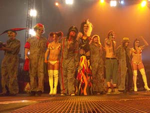 Un circo con el que ilustran esta vuelta a los escenarios, sobre unas tablas en las que se va a representar la mejor obra teatral del Rock, para un anfiteatro que se presenta, engalanado por unas llamativas franjas rojas y blancas, como el marco ideal para gozar de una experiencia única.Un show en el que el espectáculo visual es parte importante del mismo, pero en el que prima la presencia de los músicos, y su propia música, por encima de artefactos y piruetas.Un repaso cronológico que transcurre desde una previsible y razonada excitación, pero desde la aparente naturalidad y buenas sensaciones que transmiten cuatro amigos que tocan, como los mismos cuatro confidentes que vuelven a quedar para tomar unas cervezas.
