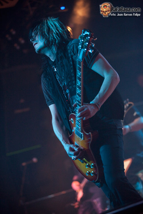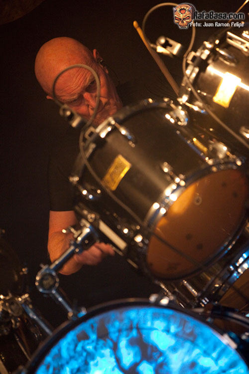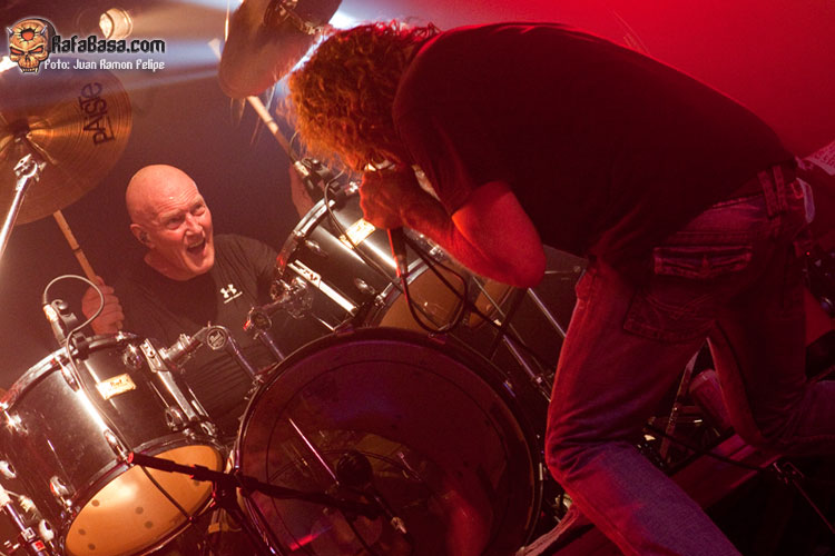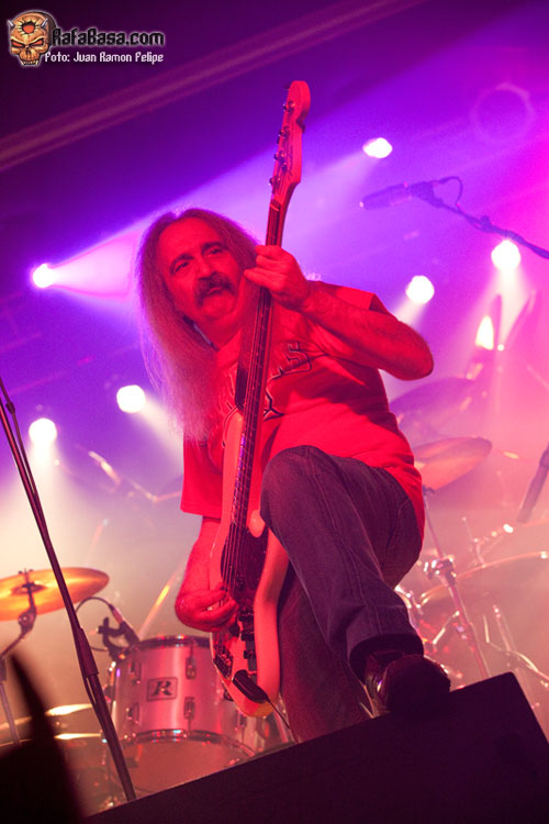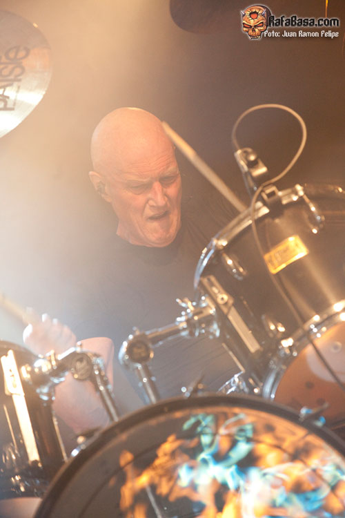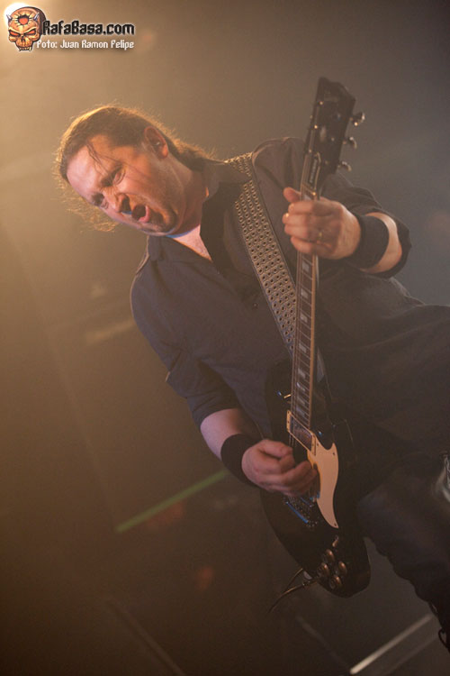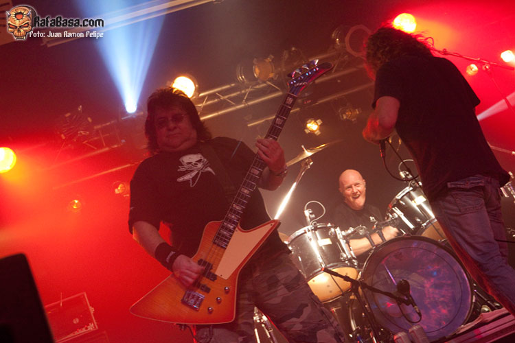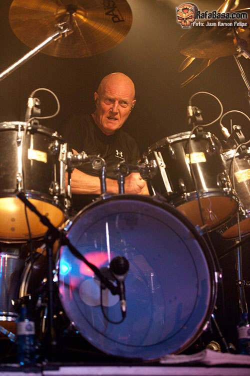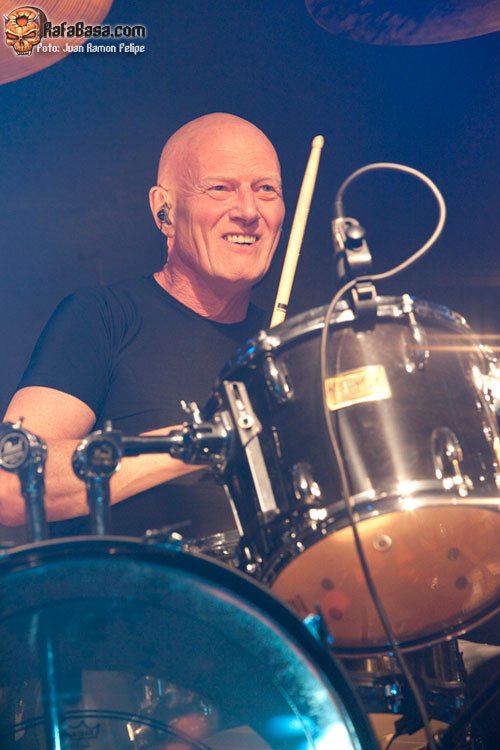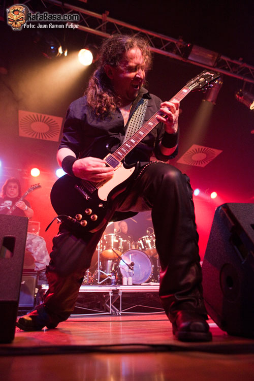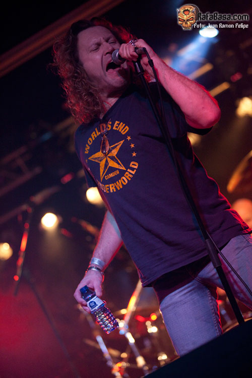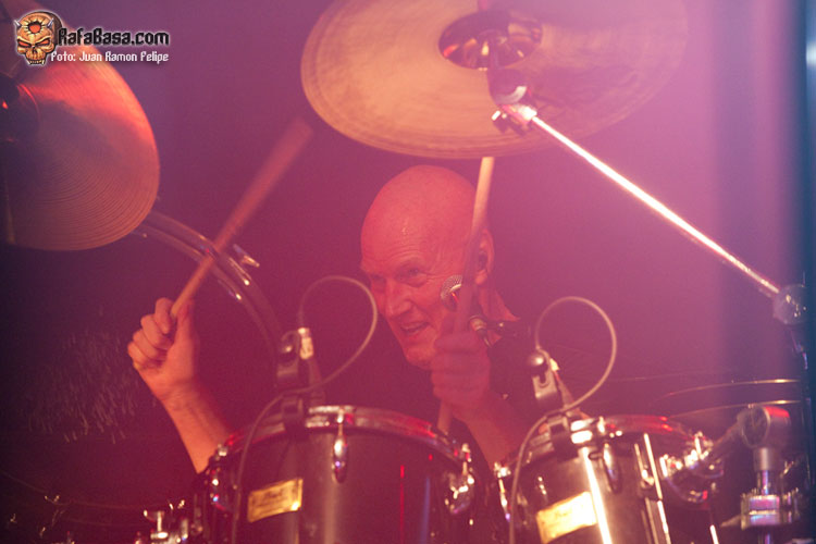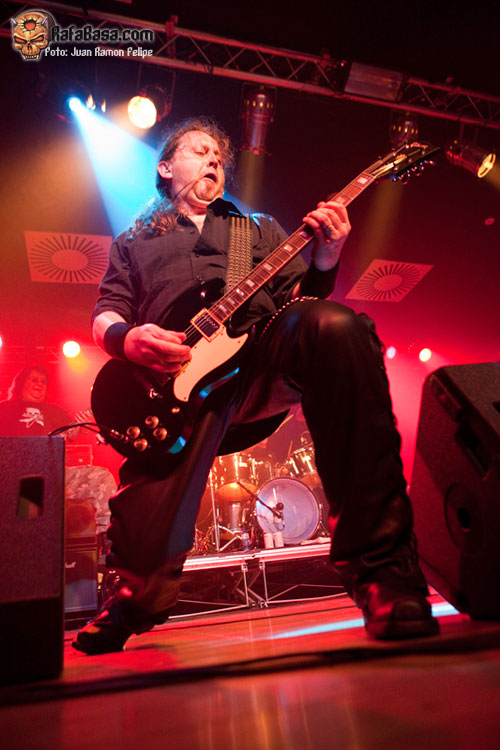 De todos modos, los protagonistas de la noche eran las huestes de Chris Slade (aunque fuera otra banda tributo en elfondo), que hay que decir que está físicamente igual que la mayoría le recordamos del mítico "Live at Donnington 91", algo envejecido quizás a nivel de cara, pero manteniendo aspecto, pose inconfundible y clase… y eso que nunca ha sido un batería estratosférico a nivel técnico, pero al final la distinción y elegancia en el rock se dictaminan por muchos otros factores, y si Chris ha estado 45 años tocando en muchas de las bandas más importantes de la historia, será por algo. A su lado, destacar a un Keri Kelli por el que siempre he tenido un aprecio especial, un guitarrista con una imagen y técnica envidiable pero que luego se hace querer a base de una cercanía, autenticidad y chispa que sólo tienen los elegidos. Además, después de verle "de lejos" parapetado dentro de todo el entramado de un concierto de ALICE COOPER, me pareció todo un lujazo verle "en un club" disfrutando con una sonrisa de oreja a oreja simplemente de tocar rock clásico para unos pocos amigos.