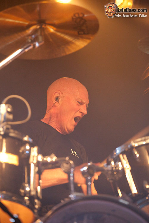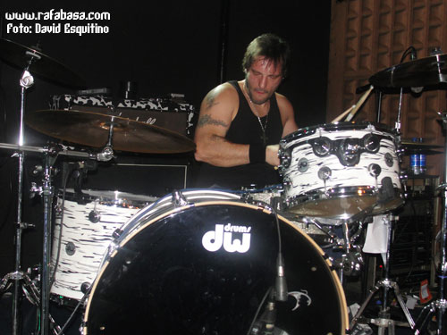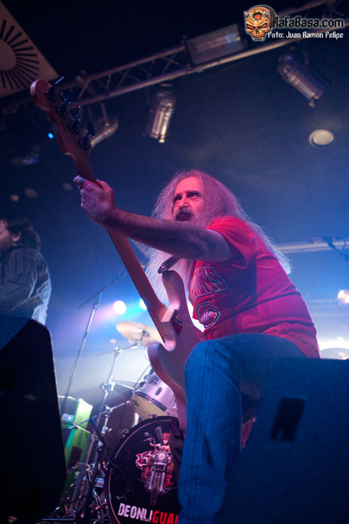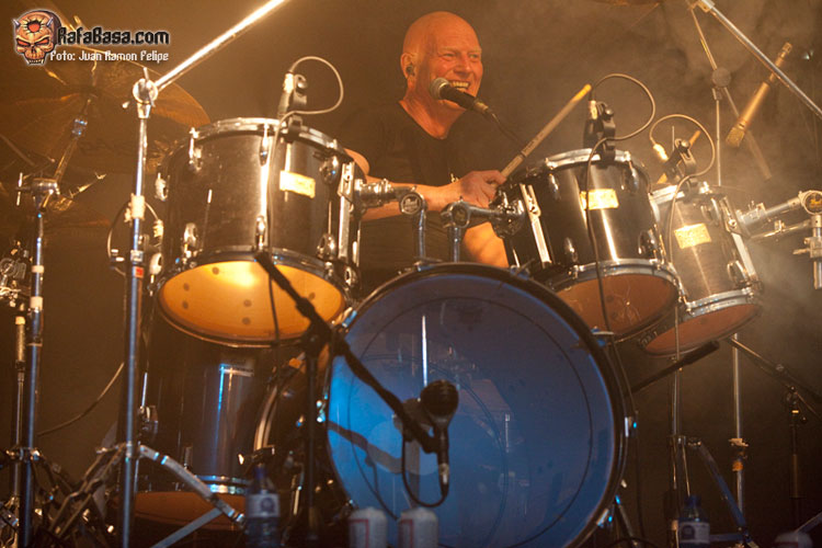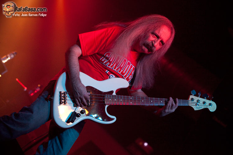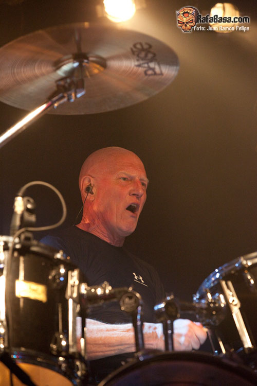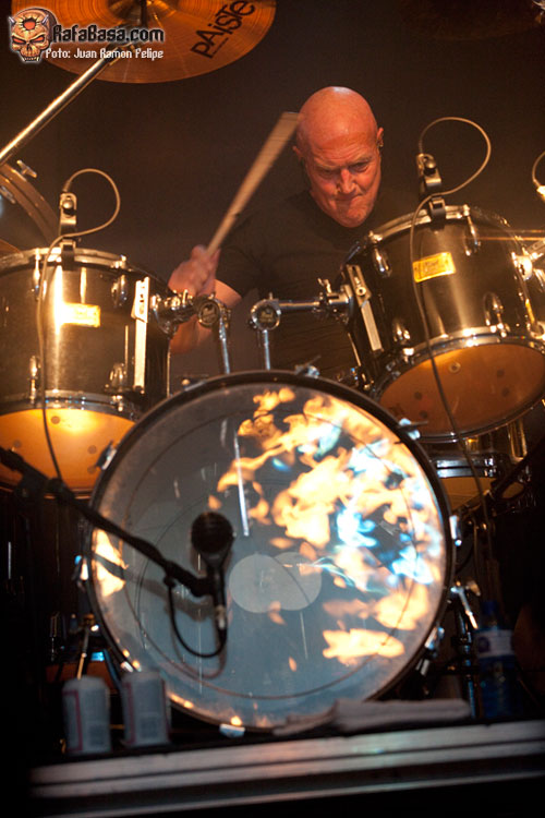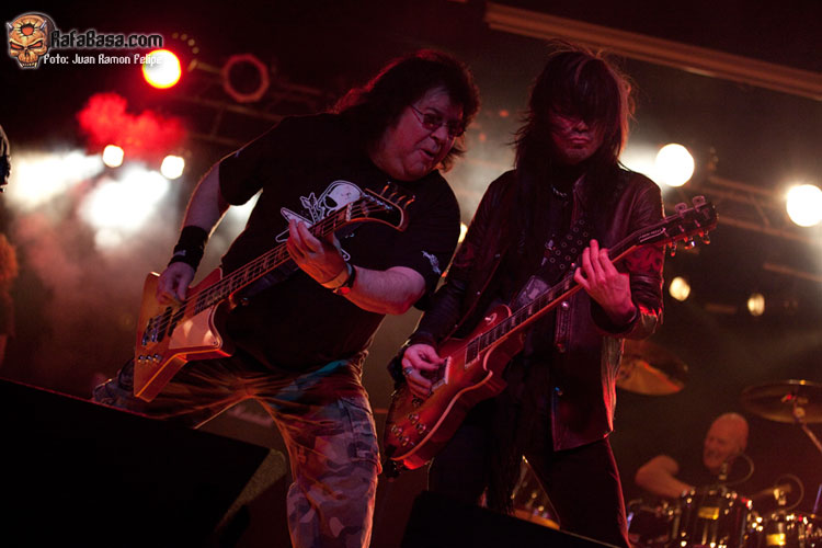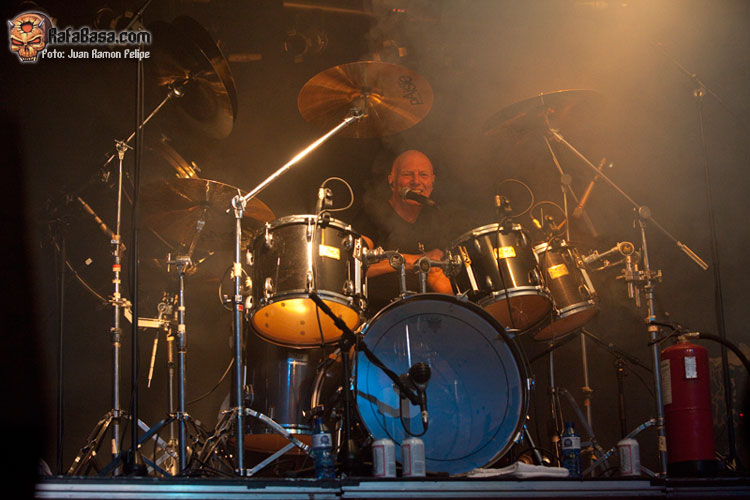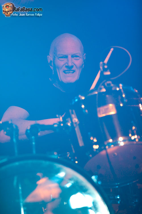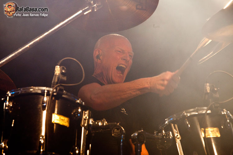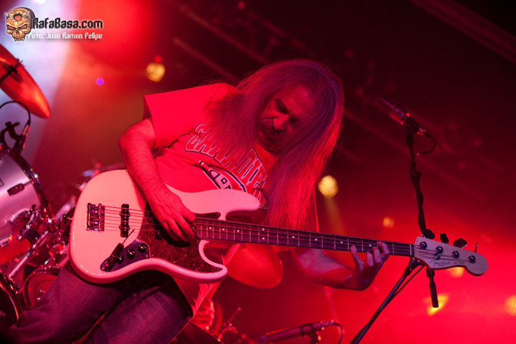 De todos modos, los protagonistas de la noche eran las huestes de Chris Slade (aunque fuera otra banda tributo en elfondo), que hay que decir que está físicamente igual que la mayoría le recordamos del mítico "Live at Donnington 91", algo envejecido quizás a nivel de cara, pero manteniendo aspecto, pose inconfundible y clase… y eso que nunca ha sido un batería estratosférico a nivel técnico, pero al final la distinción y elegancia en el rock se dictaminan por muchos otros factores, y si Chris ha estado 45 años tocando en muchas de las bandas más importantes de la historia, será por algo. A su lado, destacar a un Keri Kelli por el que siempre he tenido un aprecio especial, un guitarrista con una imagen y técnica envidiable pero que luego se hace querer a base de una cercanía, autenticidad y chispa que sólo tienen los elegidos. Además, después de verle "de lejos" parapetado dentro de todo el entramado de un concierto de ALICE COOPER, me pareció todo un lujazo verle "en un club" disfrutando con una sonrisa de oreja a oreja simplemente de tocar rock clásico para unos pocos amigos.