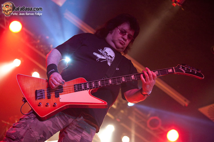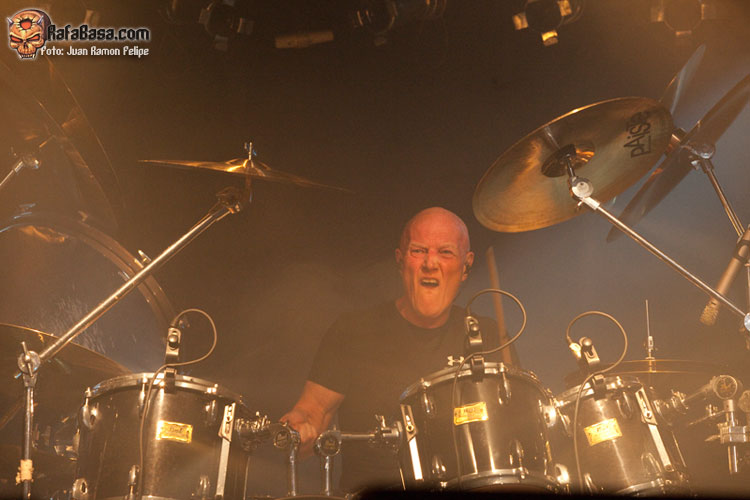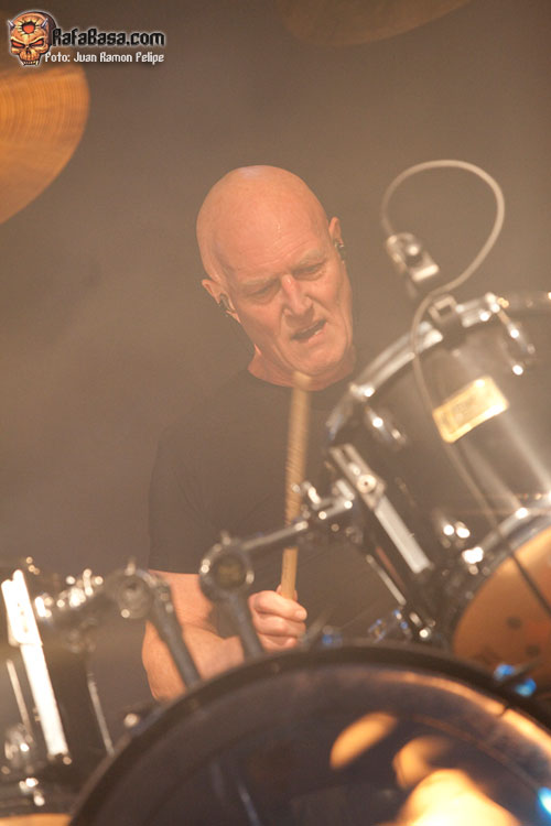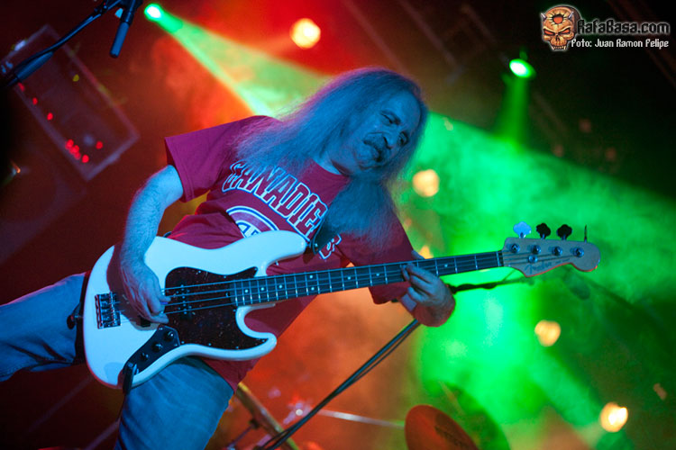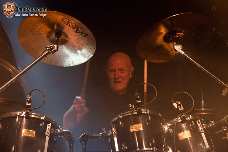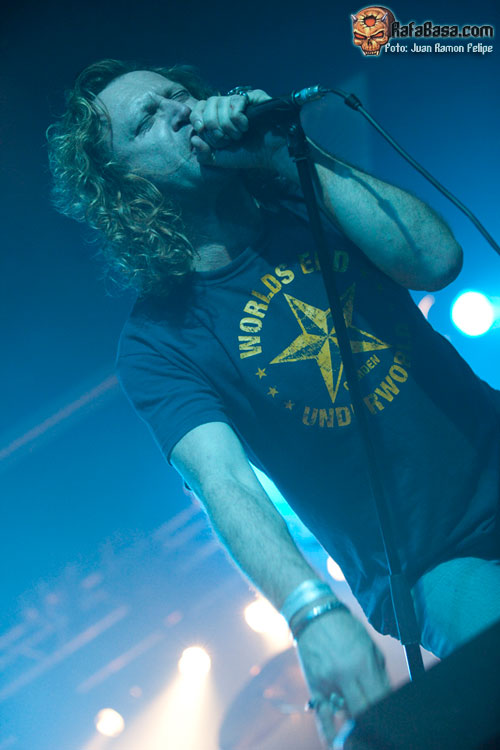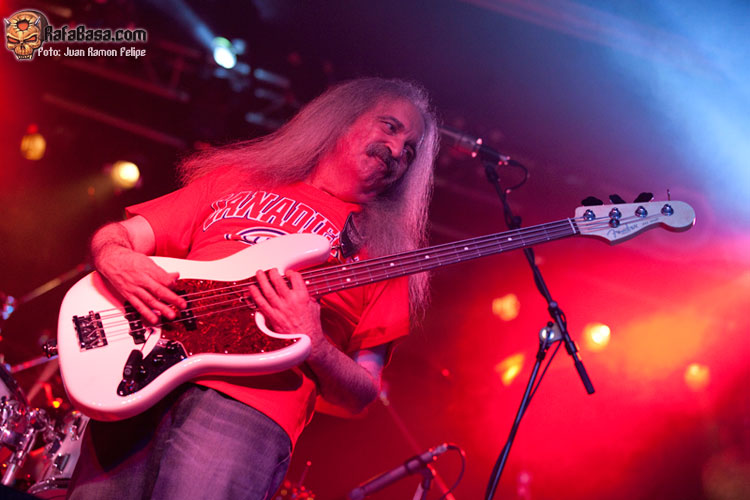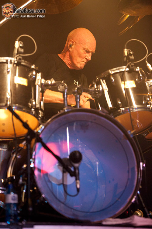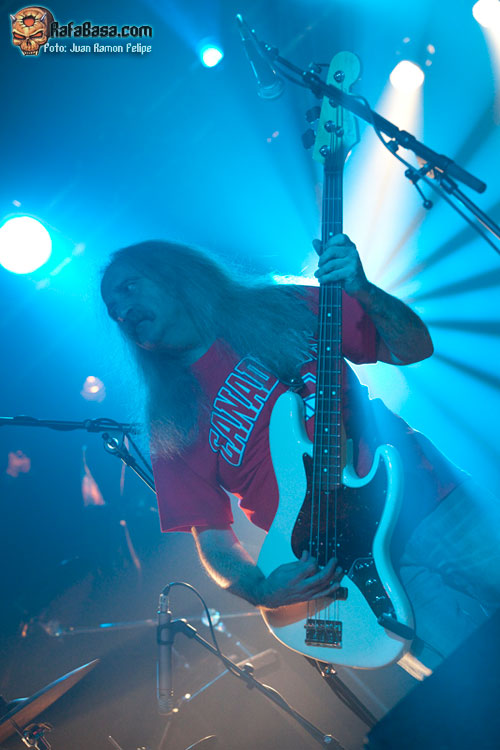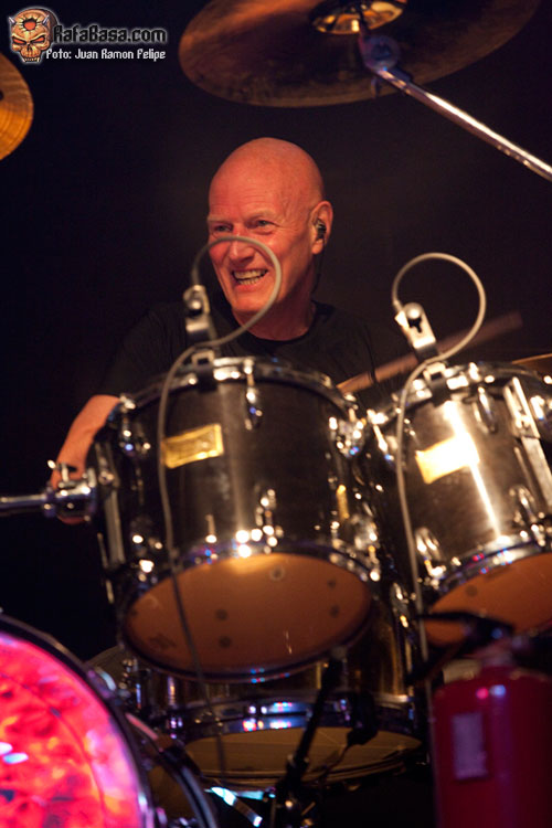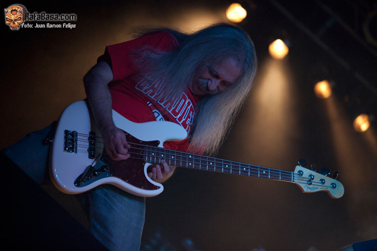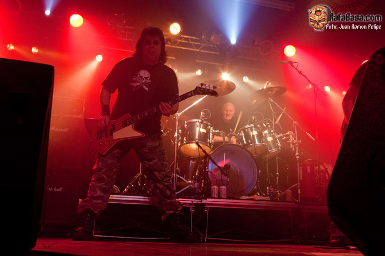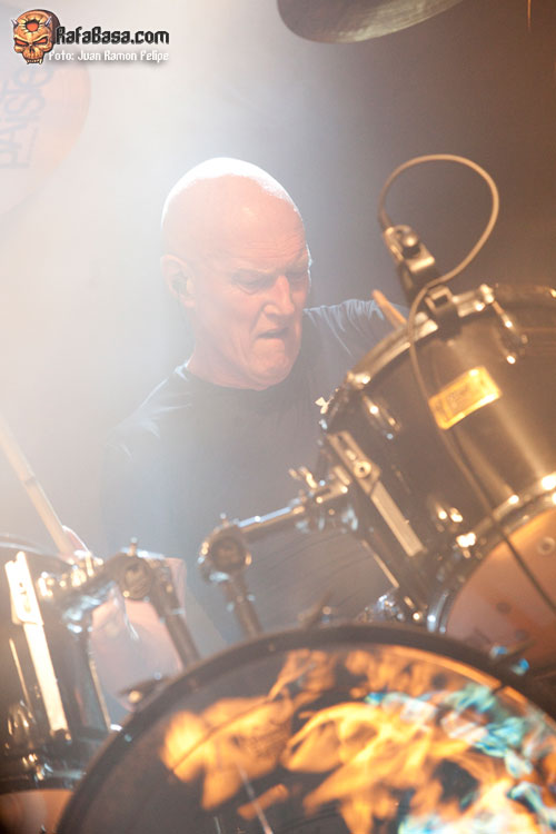 De todos modos, los protagonistas de la noche eran las huestes de Chris Slade (aunque fuera otra banda tributo en elfondo), que hay que decir que está físicamente igual que la mayoría le recordamos del mítico "Live at Donnington 91", algo envejecido quizás a nivel de cara, pero manteniendo aspecto, pose inconfundible y clase… y eso que nunca ha sido un batería estratosférico a nivel técnico, pero al final la distinción y elegancia en el rock se dictaminan por muchos otros factores, y si Chris ha estado 45 años tocando en muchas de las bandas más importantes de la historia, será por algo. A su lado, destacar a un Keri Kelli por el que siempre he tenido un aprecio especial, un guitarrista con una imagen y técnica envidiable pero que luego se hace querer a base de una cercanía, autenticidad y chispa que sólo tienen los elegidos. Además, después de verle "de lejos" parapetado dentro de todo el entramado de un concierto de ALICE COOPER, me pareció todo un lujazo verle "en un club" disfrutando con una sonrisa de oreja a oreja simplemente de tocar rock clásico para unos pocos amigos.