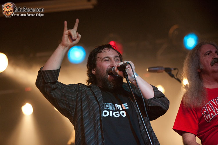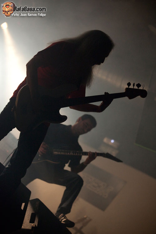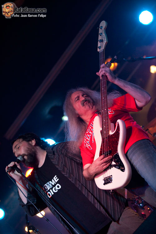 A nivel sonoro me sorprendieron mucho, con unas afinaciones realmente graves de guitarra y sobre todo bajo (¡qué buena imagen, pose y actitud del bajista, Jorge, si no me equivoco, por cierto) que le daban al tributo la coherencia y potencia necesaria (a lo que por cierto ayudaba Juanjo, desde una pequeña pero muy pintona batería de cebra en un lateral del escenario) para que fuese lo más fiel posible a la primera etapa SABBATH, en la que se basa la banda. Así, comenzaron de manera muy oscura y pesada directamente con "Black Sabbath", y fueron ofreciendo temazos como "N.I.B.", "Iron man", "Children of the grave" o la brutal "Symptom of the universe", para cerrar con un fantástico y más roquero "Paraonid", además del homenaje final y recuerdo a Ronnie James Dio, "ese pequeño gran hombre", como dijo Vero, con la imprescindible "Heaven&Hell", que nos dejó a todos muy satisfechos aunque con ganas de más, las cosas como son… Y mira que nunca he sido yo demasiado de bandas tributo, pero cuando tienen la calidad y el rollo de gente como SABBATH CADABRA, la verdad es que el buen sabor de boca y las ganas de repetir es algo que surge sólo.