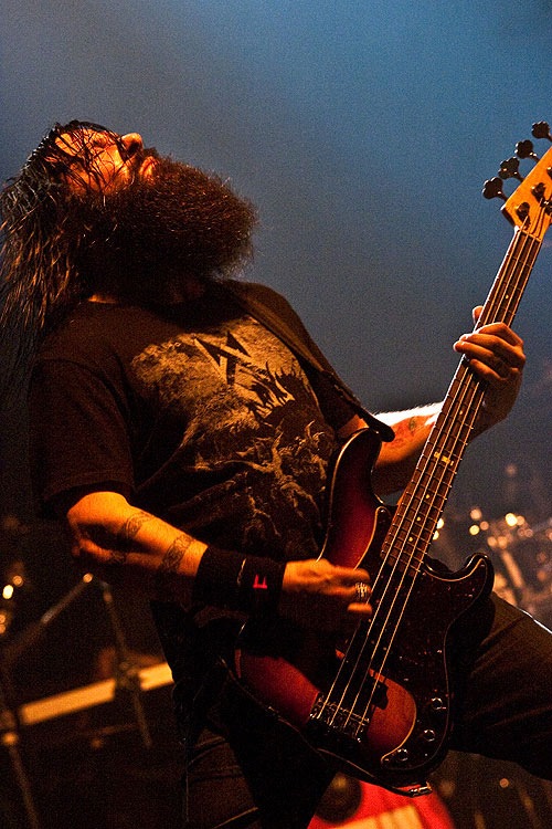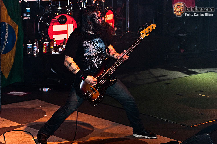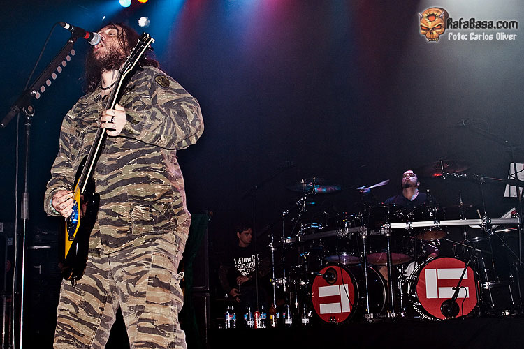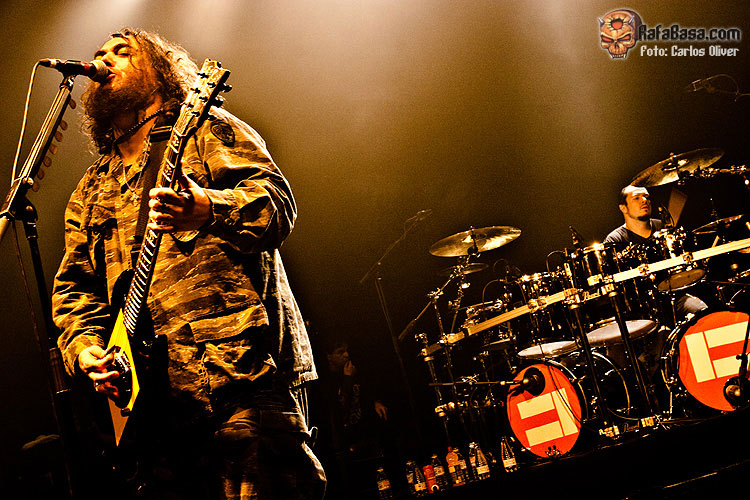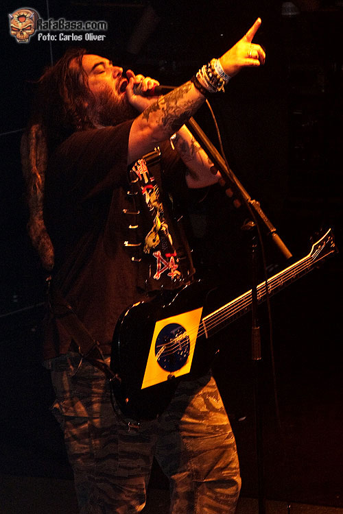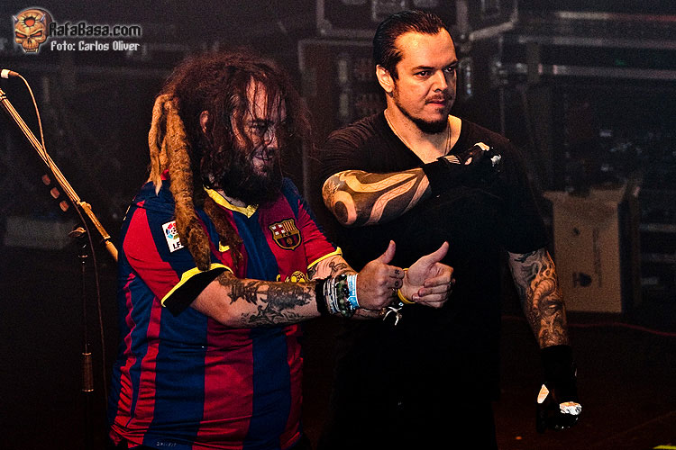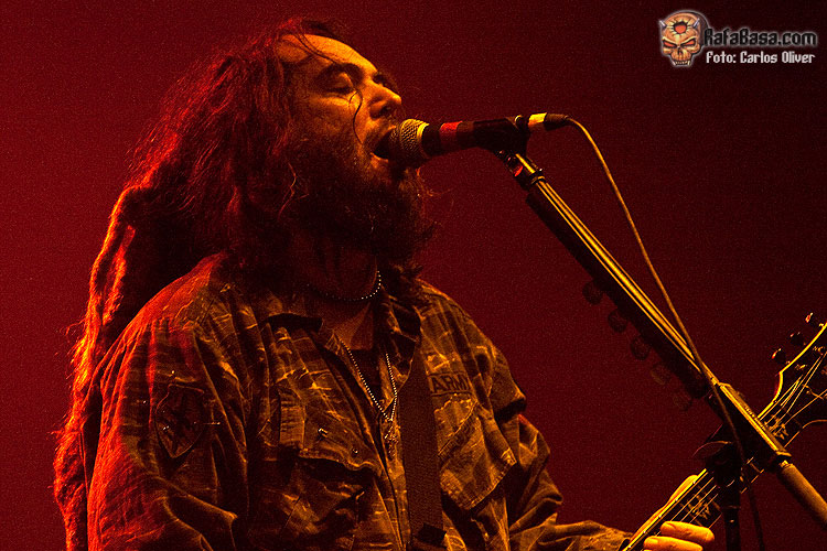 Igor estaba incuestionable tras la batería, totalmente en forma como en sus mejores momentos. En cuanto a Max, eso ya es otra historia. Sus labores como guitarrista son cada vez más evidentemente limitadas cediendo gran parte del protagonismo en estos menesteres a Marc Rizzo, preciso y efectivo donde los haya. Eso sí, como vocalista y frontman sigue gozando de gran carisma. Sabe perfectamente como motivar y hacer mover al público incluso ante canciones que nadie había escuchado hasta el momento. Temas como "Gengis Khan" hicieron destacar positivamente también la labor de Chow al bajo, totalmente entregado. "I Speak Hate" podría servir para definir perfectamente la honda adquirida por Cavalera Conspiracy en su segundo álbum. Un corte "in your face", con continuos cambios de ritmos y con una influencia más que evidente del old school hardcore. Tras este tema, Max presentó al resto de la banda. Como no podía ser de otra manera Igor se llevó las máximas reverencias de la audiencia, respecto Marc "Conan" Rizzo y Johny "Rasputín" (su imagen es clavada) Chow, apodos aplicados literalmente por el líder de la banda. De hecho, el nombre del loco e influyente monje ruso de la época de los zares, daba nombre al siguiente tema. "Blunt Force Trauma", a mi gusto el mejor tema que sonó del nuevo disco, cerró esta primera parte del show.