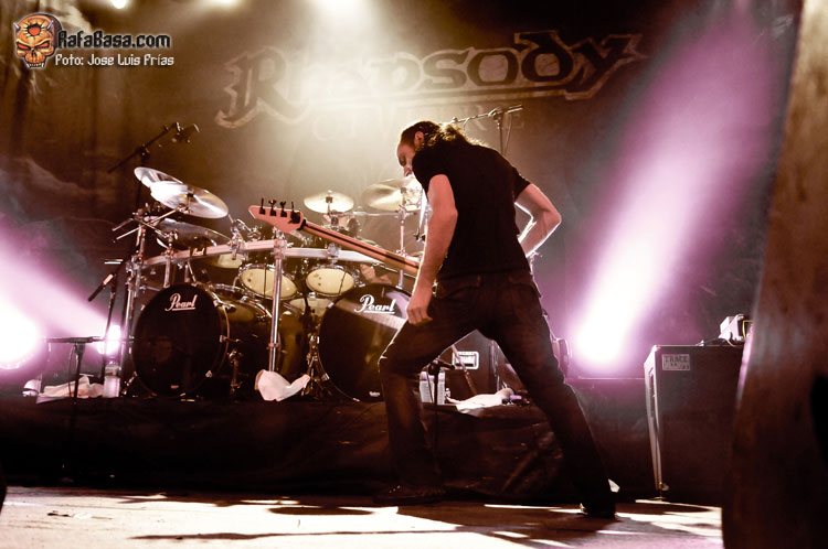 Nadie que no haya visto recientemente a RHAPSODY OF FIRE (para muchos aún sin el "of fire" final, que era como todos los aclamaban, y es que cuesta acostumbrarse aunque hayan pasado años ya) puede discutirme que no son buenos en directo. Mucho ha llovido desde que les viera teloneando a los Stratovarius de la gira del "Infinite", también en La Riviera, en un concierto correcto pero no brillante, donde se veía a unos músicos tocando con orquesta pre-grabada de fondo más que a un todo compacto. Este sábado me encontré a una banda, que efectivamente sigue apoyada en los samplers para poder llevar al directo su música tal y como ha sido concebida, pero que destaca sobre todo por los seis músicos que hay en escena, auténticos virtuosos todos ellos.