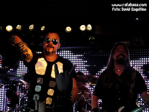 Nos dice Joakim que esta vez tienen más tiempo para tocar que la última vez, con lo que pueden meter algún tema no tan habitual como es la hipnótica "Rise of evil", muy bien recibida, claro, pero nada comparado con el cañonazo que supuso "Attero dominatus", con toda la caña rítmica y pesada del tema retumbando en cada corazón metálico que pululaba por la sala, y ganándose (que no pidiendo) los "oés" merecidos de toda la sala. Por cierto, también nos recordó el vocalista que la primera visita a España de la banda fue con DRAGONFORCE y EDGUY en el 2005, antes de presentarnos a Frederic, que les acompaña temporalmente en esta gira, como decía antes, y con el que parece que han hecho muy buenas migas.
