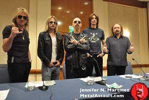 Según Greg Prato de Rolling Stone, JUDAS PRIEST han anunciado en la rueda de prensa que ofrecieron ayer 24 de mayo en el Hotel Renaissance de Highland y Hollywood en Los Ángeles, que sacarán su próximo trabajo hacia el verano del año próximo. También presentaron al nuevo guitarrista Richie Faulkner (DIRTY DEEDS, VOODOO SIX, Lauren Harris), y Glenn Tipton afirmó que posiblemente esta serían las últimas oportunidades del ver al grupo en directo. (Foto de la rueda de prensa: MetalAssault.com)