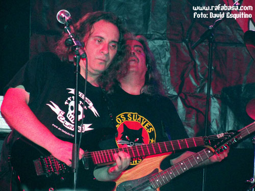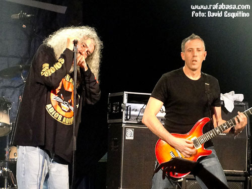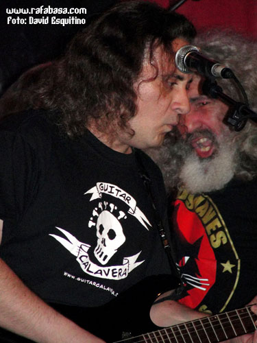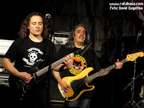 Luego, a nivel personal y musical, siempre destaco la pareja que forman Cereijo y Fernando Calvo, pero es que es una pasada verles tocando, ya sea a nivel individual como conjunto, acercándose a la gente a hacer los punteos doblados (a lo THIN LIZZY), fabricando rotundos riffs base de los temas, o haciendo sólos de esos que te dejan con la cabeza loca pensando en cómo podrán fabricar esos sonidos sólo con los dedos. Y luego la base rítmica de Charly y Tino es cada vez más rotunda, inamovible y sonando como un cañón, y es que "dicen que somos ruidosos, los oídos sufren mucho, que cuando estamos tocando hacemos mucho follón"… es lo que hay, ¡y lo que nos gusta de los shows de la banda!