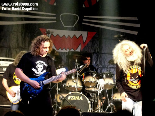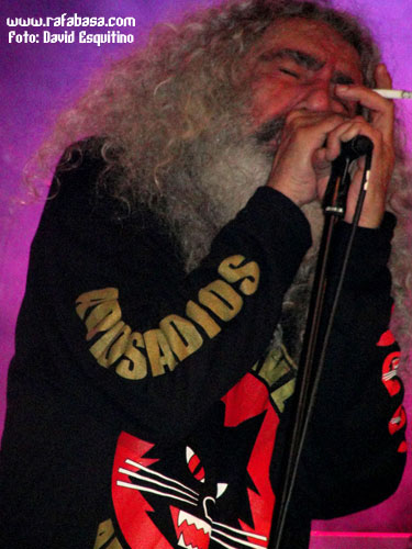 La entrada, pese a lo que comento sobre las dudas iniciales sobre el concierto, al final fue bueno, juntándonos unos 1.300 seguidores, que no es moco de pavo teniendo en cuenta que había tres conciertos similares ese día, los tiempos que corren y que LOS SUAVES han venido varias veces a la capital en los dos últimos años. Y es que los seguidores de la banda siempre son fieles y en Madrid nunca fallan, aunque no hubiera el llenazo de otras veces en la misma sala. Y me gustó comprobar de nuevo el buen estado actual de Yosi que, aunque comenzó dubitativo, poco a poco se entonó y la verdad es que cumplió con creces, destacando la inmensa sonrisa con la que nos deleitó en todo momento en los últimos temas del show, demostrando que lo estaba disfrutando. Por cierto, pedazo de barba blanca que se ha dejado, mostrando un aspecto cada vez más de "anciano venerable" pero manteniendo ese encanto y punto entrañable que tiene para todos. Y es que me hizo mucha gracia el comentario de Charly a la salida cuando le pregunté por esto y me dijo en tono jocoso que su hermano está un poco loco y que ahora dice que se quiere dejar la barba "como los ZZ TOP", jeje.