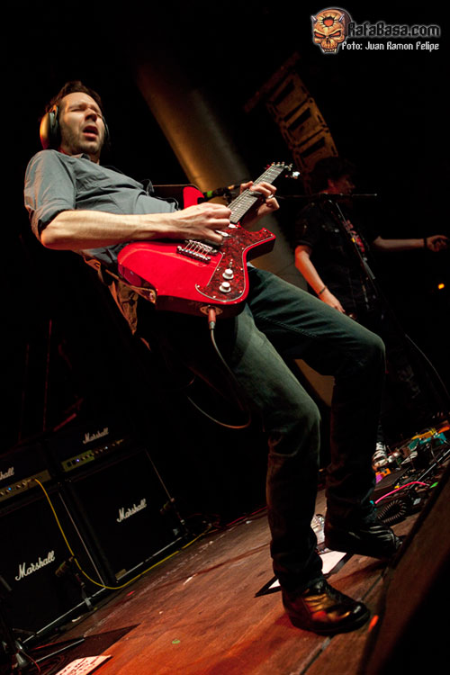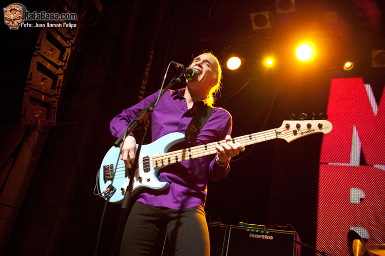 Con la sala Heineken hasta la bandera, disfruté de un gran concierto, a pesar del mal sonido y la incomodidad que supone ver un evento con tantas apreturas en una sala que se quedó demasiado pequeña y donde parte de los asistentes no vieron el concierto como deberían. Yo tuve suerte de entrar pronto y pillar un rincón estratégico en las escaleras de bajada a la pista. Entiendo que la crisis haga que los promotores sean excesivamente precavidos y conservadores a la hora de elegir los recintos; las cosas están mal, y hay quien pensaba que la Riviera, -donde tocaron la anterior vez-, se podía quedar grande para esta segunda ocasión, pero también es injusto que mucha gente comprara su entrada y apenas lograra ver el escenario o en el mejor de los casos las cabezas de Sheehan o Gilbert, que por fortuna son bastante altos. Una pena…