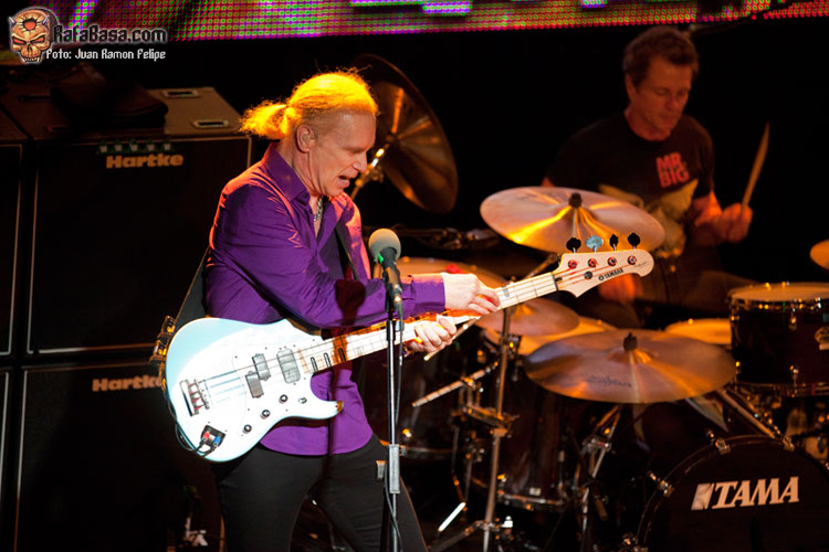Yo estuve en el concierto del 2009 y tras alucinar como lo hice, obviamente, no podía perderme este. Sabedor que esta sala no da para más, me dije, a lo mejor oigo una mierda, pero voy a ponerme en la zona de Paul, a difrutar como un enano, y ya ves si lo hice. No se si de lejos no se oía tan bien como debiese, pero yo le oía hasta pestañear, así que feliz como un regaliz. Ahora bien, e Eric si que no le entendía en las estrofas. A todo lo ya mencionado, decir que añoré un solo de batería de Pat. Que el solo de Billy, me gustó mucho más que el del 2009, aunque bastantes similitudes, la verdad. Y el solo de Paul, me gustó, joder, es Paul Gilbert, a quien no le guste P.G debe ir a que le examinen por que no está bien, pero me parecio muy flojo, le he visto en solitario, he dado una masterclass con él en la sala Live en diciembre del año pasado, y comparado con lo que vi, oí y disfruté aquel 16 de Dic, este Paul estaba un poco oxidado. Yo creo que estaba un poco pachucho, pues no paraba de toser, muchos de los coros no los hacía. Y aún así, uno de los dioses por excelencia de la guitarra tocó que ya quisieran muchos de los que por ahí andan, yo incluido.