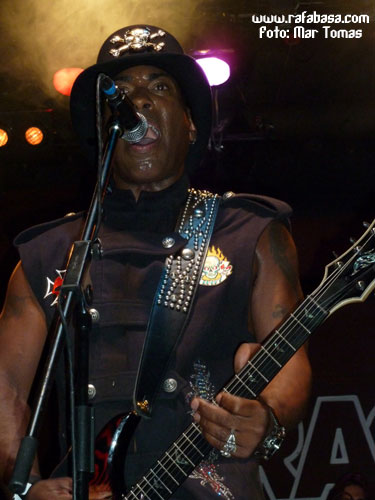CROWN OF THORNS salieron ante la frialdad de una despoblada sala y arrancaron su actuación con el tema homónimo de su disco Faith, tras la intro. Casi una mera anécdota, pues el resto del set-list estaría protagonizado en su gran mayoría por temas de su álbum más apreciado, Crown Of Thorns. Así, tras Faith sonaron Are You Ready, Hike It Up y Secret Jesus. Desde el primer momento se hicieron patentes dos hechos. Por un lado, el sonido no iba a ser nada bueno. Por otro, el señor Jean Beauvoir se iba a entregar cantando, tocando y moviéndose constantemente aunque fuera ante un escaso número de público.