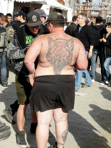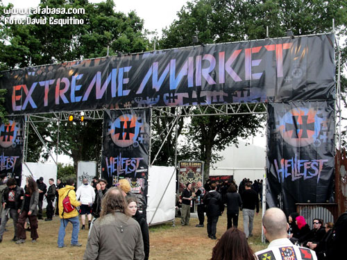 Y no me olvido de hablar del mercadillo, con dos grandes carpas a modo de Metal Market (con toda la variedad, diversidad y cantidad de memorabilia de nuestro rollo que podáis imaginar, el paraíso para cualquier bolsillo metalero pudiente, vaya), además de muchos más puestos laterales donde sólo eché de menos algo más de cantidad de ropa de cuero, de lo que estuvo la cosa bastante escasa (y es que ademá,s entre el frío y la lluvia, y la propia cantidad de público, hubieran hecho el agosto… o el junio mejor dicho). De hecho, es que había hasta puestos de tatuajes, peluquería, venta de guitarras, zapatos/botas… Lo dicho, el paraíso del metal. Y sí, cayeron varias camisetas guapas, vinilos, alguna chuminadilla…, por supuesto, jeje.