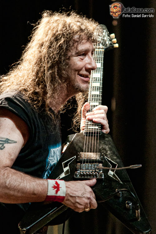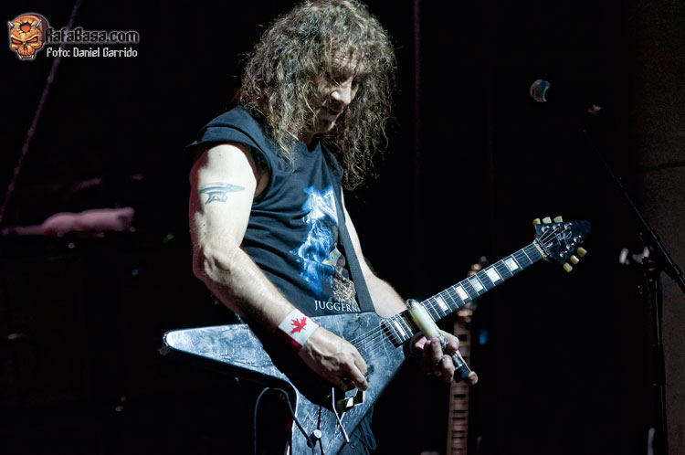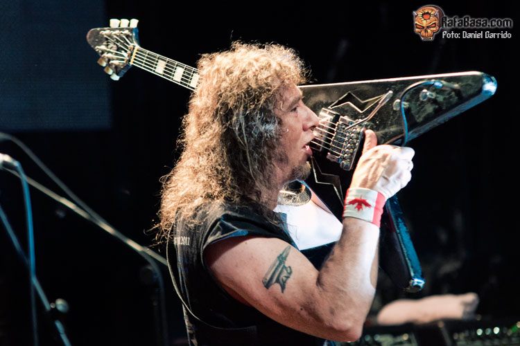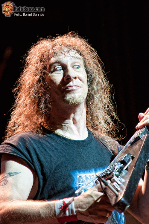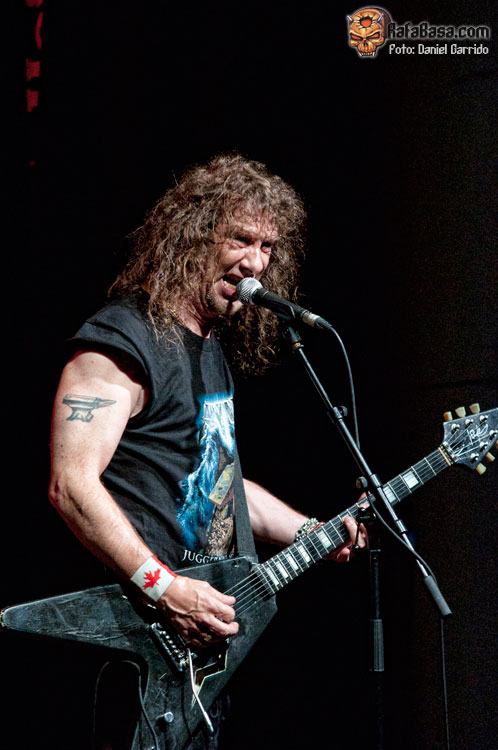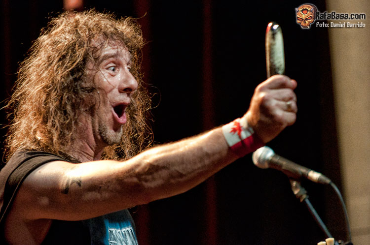 No llamó demasiado el hecho de que ANVIL montasen todo su equipo. Así lo hicieron, y con las mismas, el trío saludaba de la manera más campechana y comenzaban con ese "March Of The Crabs" que sirve habitualmente para abrir sus conciertos, ese tema instrumental del "Metal On Metal" que esta vez dejó paso al "666", que sonó poderosa y contundente como siempre. Buen sonido nuevamente para los canadienses, a los que ví más apagados desde su inicio que en Hellfest el año pasado (supongo que por la asistencia), y quienes se fueron viniendo arriba conforme avanzaba la actuación. Se hicieron en general algo cortos, lo que era previsible, aunque también es cierto que podrían haberse ahorrado el solo de Robb Reiner tras "White Rhino" o haber acortado el show de Lips a la guitarra, que en un concierto en formato reducido es perfectamente prescindible (con un poquito de consolador hubiera valido). Aun así, el trío demostró conservar un estado de forma envidiable, atravesando una segunda (o tercera) juventud que se vio plasmada en la ilusión con la que defendieron tres temas de su último trabajo, que además la gente acogió bastante bien, especialmente "On Fire", un corte que recupera a los ANVIL más ‘speedicos’. Por cierto, que en "New Orleans Voodoo" se le rompió una cuerda a Lips, cosas del directo… Al final se echaron algunos temas en falta, temas como "School Love", "Forged In Fire" o "Free As The Wind", pero el sabor de boca fue excelente para el tiempo del que dispusieron. A ver si se animan a presentarnos su última obra como cabezas de cartel. ¡Será algo digno de ver!