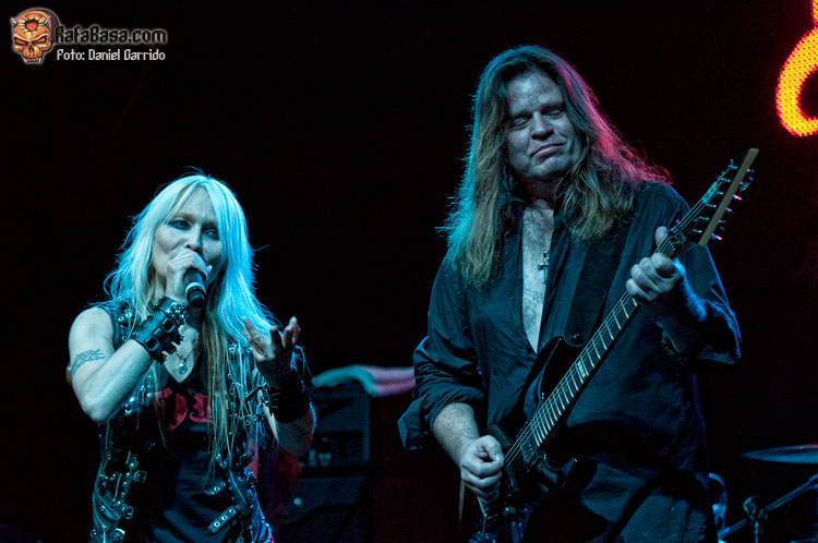 Doro era la primera en hacer acto de presencia, con una Heineken volcadísima desde el "Stand Up And Shout" y especialmente después con el "Holy Diver", como era de esperar. Todo hay que decirlo, y es que si la banda salió un poco fría y "cariacontecida", Doro salió algo fuera de sitio, un poco dubitativa, equivocándose en un par de ocasiones o tres con las letras a pesar de leerlas por momentos y sin la fuerza vocal a la que nos tiene acostumbrados fruto del nerviosismo y las dudas. Después se fue soltando, como todos sobre el escenario, pero es justo reconocer que el Sábado no vimos en ningún momento a la Doro que estamos acostumbrados a ver en solitario, y aunque a nivel vocal no estuvo mal (mejor que Toby, probablemente), se la notó falta de confianza. "Egypt (The Chains Are On)" fue desde luego una de las grandes sorpresas en el set de la noche, justo antes de que llegase el primer relevo, con Toby Jepson empezando con "King Of Rock