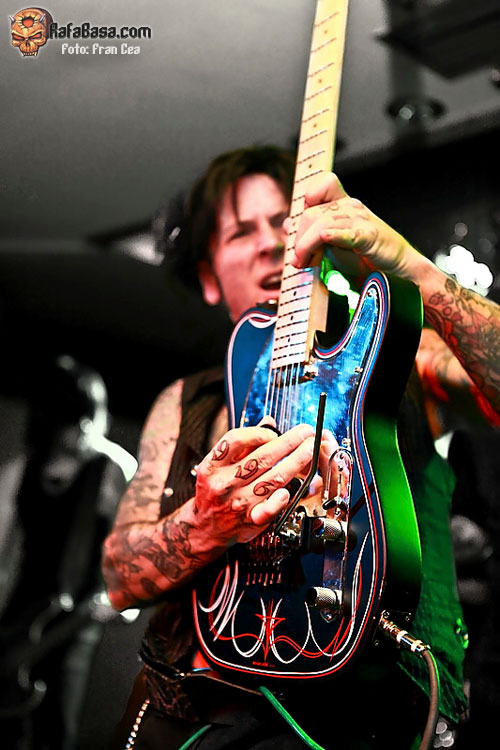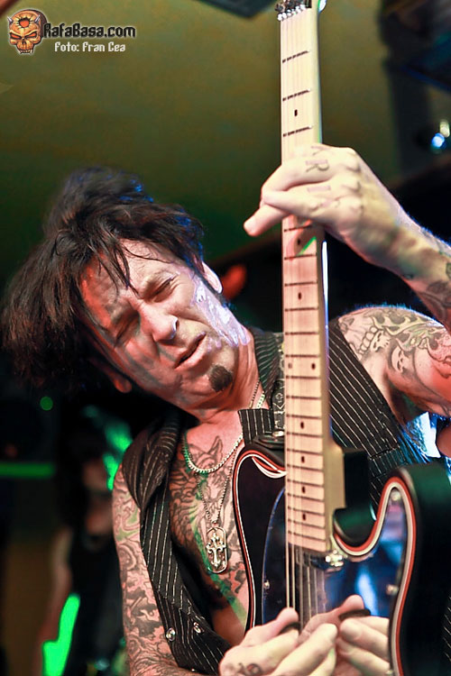 Arrancan con un tema del Shrinking Violet, el único que ha grabado Jizzy en estudio, y nada más sonar los primeros acordes de Deicide resultó complicado decidir donde dirigir la mirada entre el vocalista , elegante con su camisa negra abierta, y Tracii, con su guitarra Dean, se sobró el solo para sacar adelante composiciones escritas para dos guitarristas, que se movió de manera constante sobre el escenario no pareciendo haberle afectado el largo viaje por carretera de ese día (la noche anterior actuaron en Lerida y llevan bastantes fechas enlazadas).