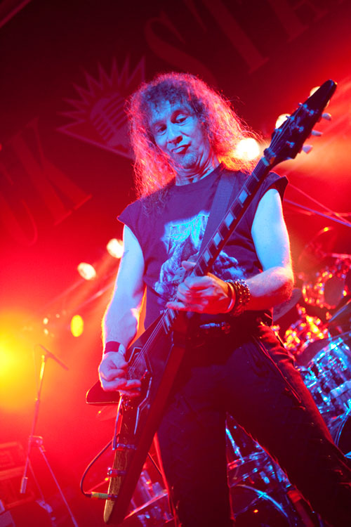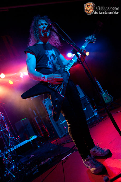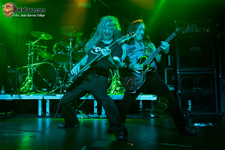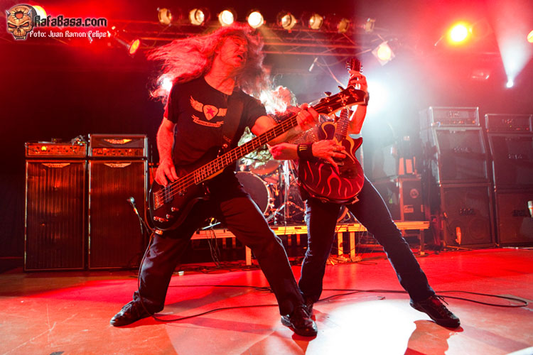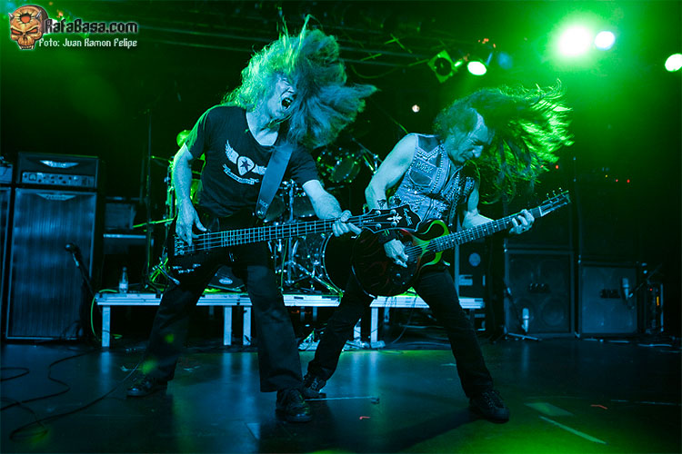 La pareja conformada por los dos primeros suple la ausencia de cualquier frontman en solitario que nos podamos imaginar. Dominan cada pose y cada movimiento, conformando una pareja muy compenetrada que aprovechó un escenario más amplio tras retirar la batería de ANVIL. Carl Canedy a la batería se encuentra más en solitario, pero es impresionante lo que toca y cómo lo toca, con una habilidad y una fuerza dignas de un veinteañero. De hecho, su solo fue bastante más destacado de lo que en la actualidad suele ocurrir una vez vistos tantos solos de batería que solo sirven para que descanse el resto de la banda. En este caso fue una buena demostración de facultades. En conjunto esta formación de trío sonó como si un regimiento estuviera sobre el escenario. Atronó el sonido de la banda como a pocos grupos hemos visto en esta sala.