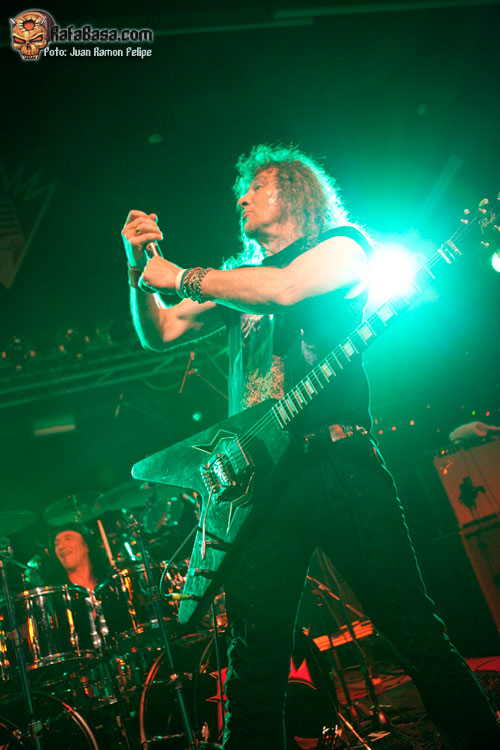 Su descarga fue una batalla sin cuartel con un repaso a todos sus discos. Lo consiguieron haciendo de su actuación una especie de medley constante. Así tras un inicio fulminante con "Hurricane", la banda interpretó "I Just Wanna Rock", uno de los nuevos. Tras "Evil In Me" ya nos habíamos percatado del nivel de quitar el hipo de los tres tipos que pisaban las tablas, sencillamente impolutos en la ejecución de un heavy metal purista del que ellos como nadie deberían enarbolar hoy su bandera. Sin embargo, el público no parecía reaccionar de la manera que merecía la banda, tal vez por desconocimiento de quienes eran. Cada vez que se cruzaban el escenario bajista y guitarrista echaba de menos más puños en alto en los costados de la sala, ya que a tenor de lo que estábamos presenciando era como para quedar boquiabierto si esto es lo tuyo.
