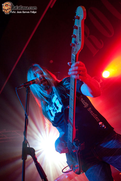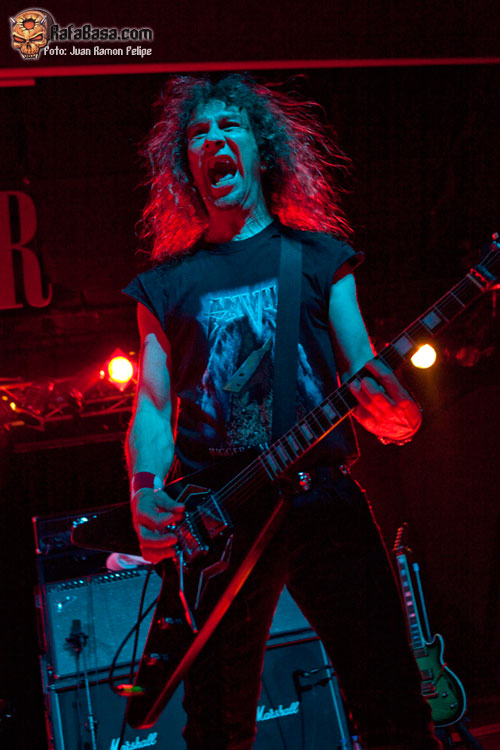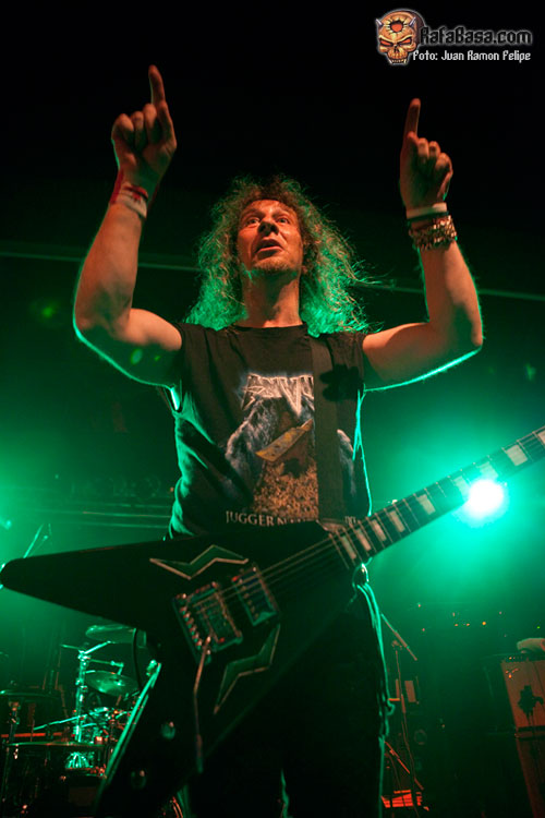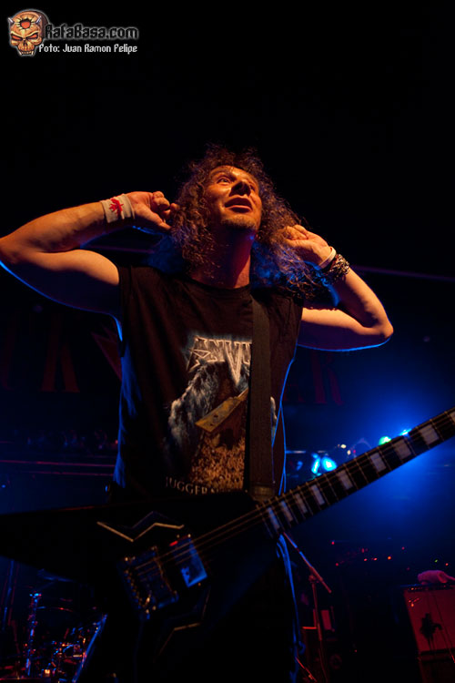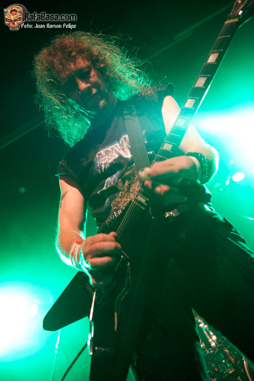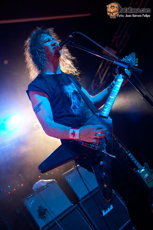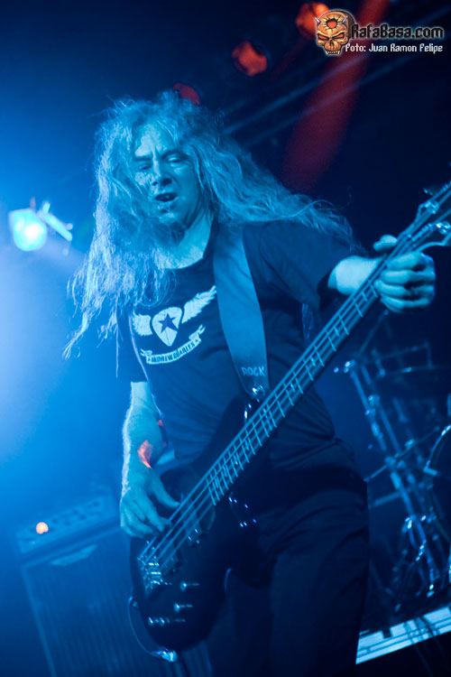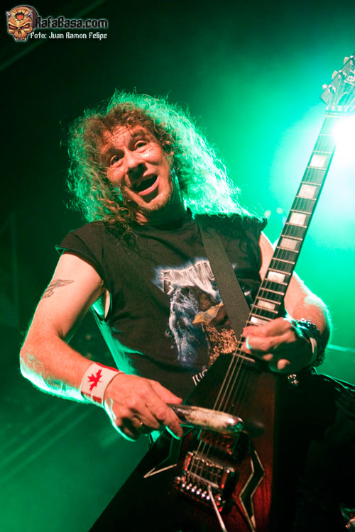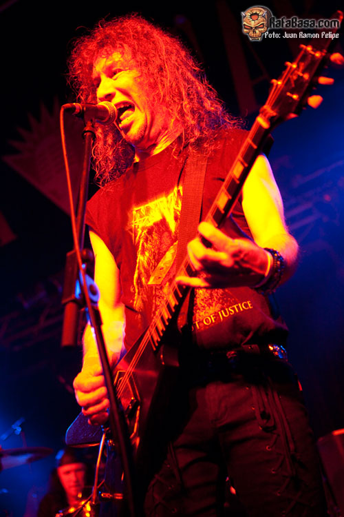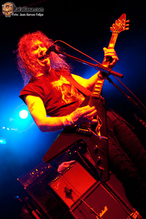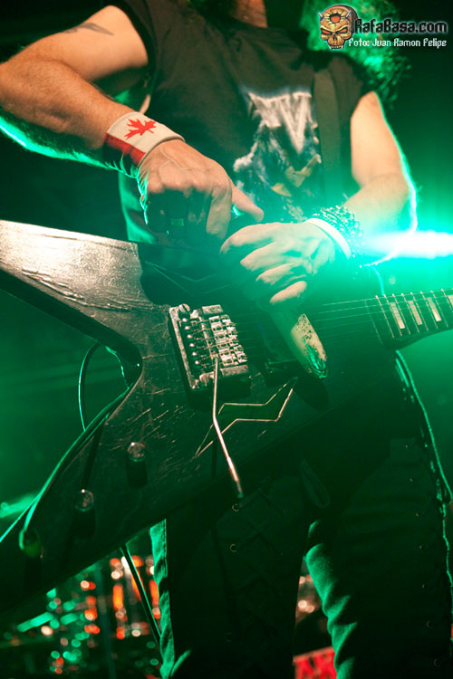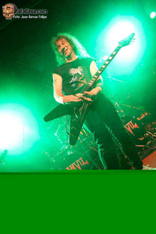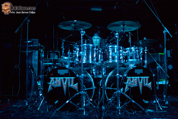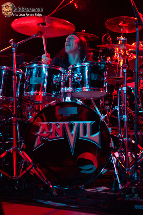 Abrieron los canadienses, que pagaron con un sonido no demasiado perfecto el no compartir backline y el no tener su propio técnico de sonido, como sí tuvieron sus compañeros de esta noche. Además, la batería les restó un espacio en el escenario del que sí dispusieron las otras dos bandas. Hasta en este tipo de detalles parece que llevan el estigma de banda maldita. Sin embargo, la entrega, la pasión y el rugido de la guitarra con el que Steve "Lips" Kudlow nos dio la bienvenida son suficiente para que la más agradable sensación entre en el cuerpo de todo metalero amante de este ruido fraguado a finales de los 70 y que estalló en los 80. No cabe duda de que su influencia en el thrash es muy clara y que tal vez si se hubieran acoplado de lleno en ese movimiento de bandas a las que ellos influyeron ANVIL hoy serían mejor considerados, pero su estancia a medio camino entre ese estilo y el heavy metal tradicional les deja en una tierra de nadie que solo el más metido en esto ha conseguido encontrar.