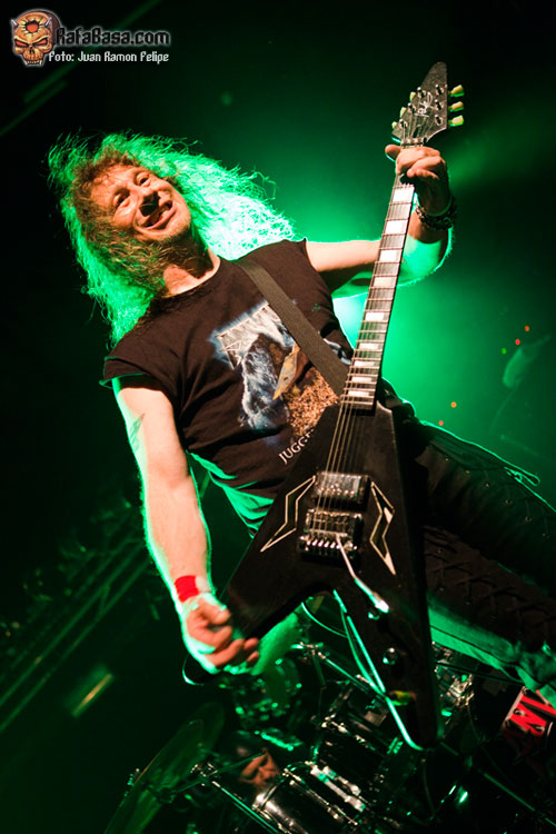 Eso sí, nos parece perfecto que ANVIL presenten su nueva obra, de la que temas como "On Fire" y el homónimo "Juggernaut Of Justice" fueron más atinados exponentes a mi modo de ver. Se trata de una banda que no ha dejado de editar discos a lo largo de su carrera, por muy abajo que hayan estado, y es complicado en 40 minutos hacer algo verdaderamente representativo de todos estos años. Más cuando es evidente que se reclaman los clásicos de esos primeros 80 donde ANVIL estuvo codo con codo con bandas que luego tendrían más suerte. Nos dejaron un exponente claro de lo que se fraguaba por aquel entonces con "Winged Assassins", finiquitando la descarga con ese esperado "Metal On Metal" que puso todos los puños arriba en torno al escenario. A los que lo hayan visto seguro que se les vino a la cabeza las imágenes de ese reciente documental sobre la historia del grupo, que recomiendo para todo aquel que quiera saber realmente lo duro que es tener un sueño en esto del heavy metal, más aún cumplirlo. Desde luego, el cariño de la gente se lo ganan con toda la pasión que ponen en el escenario, donde siempre se les ve como un niño con zapatos nuevos. Con más o menos reconocimiento su estancia en un momento clave para el metal, su influencia en bandas que luego han sido más reconocidas, sus 15 trabajos de estudio, su constancia, su forma de encarar cada actuación… les hace ganarse ese merecido título de leyenda que nadie les va a quitar.