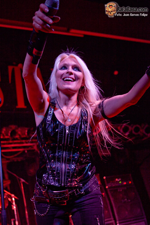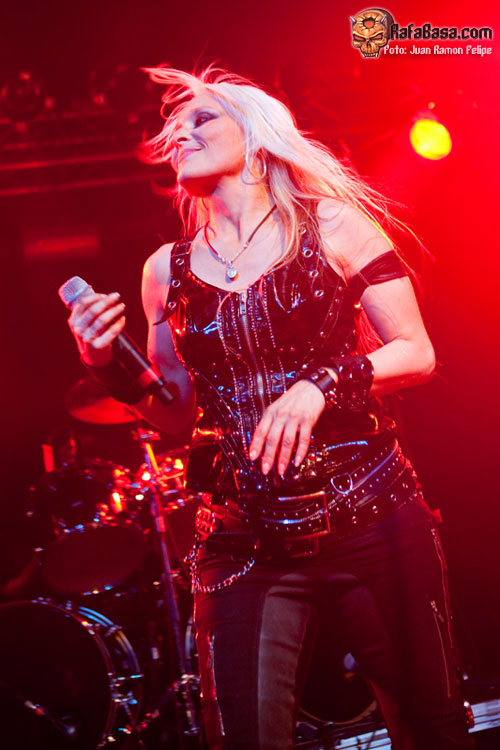 Comenzó Doro en solitario a la voz, con un fortísimo "Stand Up And Shout" que mostró a un público predispuesto a entonar estas inmortales canciones. "Holy Diver" hizo que todos sin excepción mostráramos los cuernos, signo que el propio Dio incorporó como una de las señas de los conciertos de rock. Doro se encargó de conectar con el público local saludando el euskera (Kaixo Bilbao, Zelan?). Pese a la posibilidad de la rubia alemana de lucirse en un tema tan propicio como "Don´t Talk To Strangers" entró demasiado pronto a cantar en la última parte, ante la negativa con la cabeza de Craig Goldy. Finalmente terminaron no de la manera más ortodoxa, aunque la espectacular voz de Doro se adornó para paliar posibles daños y salir del paso. Objetivamente fue un concierto con algún fallo como este, que se suplió con la entrega, y también la maestría, de los músicos. De hecho, a veces tenían que recurrir tanto Doro como Toby a la chuleta puesta en el suelo, ya que no todas las letras se las conocían perfectamente.
