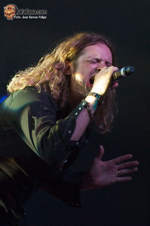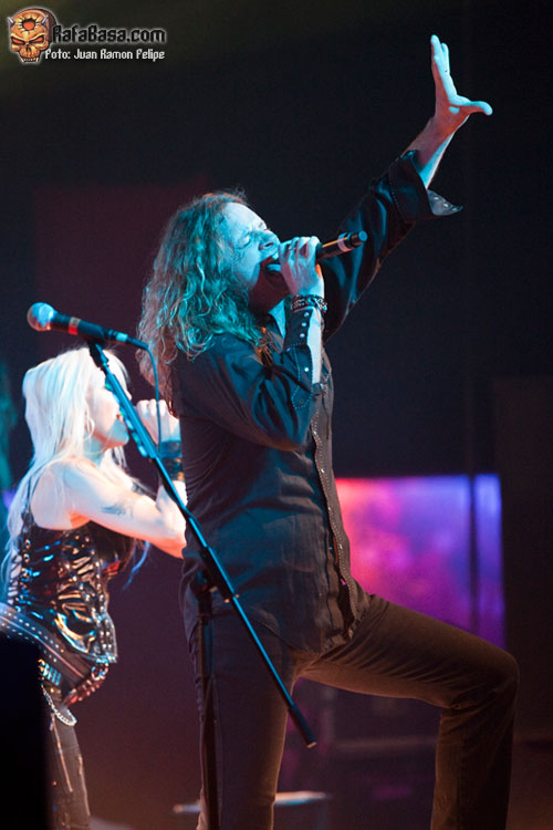 Toby apareció al quinto tema para ocupar el lugar de Doro. Después de un penetrante "Egypt (The Chains Are On)" más compacto que el anterior, Toby se estrenó en la actuación con "King Of Rock And Roll". Reconozco que no me esperaba que se acoplara tan bien a su papel de esta noche. La clave para que el vocalista nos brindara una actuación tan lúcida fue que en ningún momento quiso ser Dio, sino que utilizó su registro para abarcar los temas a su manera y quedaron versiones espléndidas como la de "Neon Knights", que como solista fue todo un alarde para él. Con la banda al completo más entera me quedo con "Stargazer", tras un pequeño fragmento cantado a dúo con Doro de "Catch The Rainbow" que tiñó de encanto lo que venía en una pieza donde todo salió bordado, incluso un solo de guitarra de Craig Goldy complicado de superar. Probablemente no lo hiciera en el resto de la descarga, como tampoco superarían esta gran pieza de RAINBOW que sigo reteniendo en mi mente como un momento mágico. Pero sí que se le acercó otro tema con Doro y Toby sobre las tablas, esta vez de BLACK SABBATH. Me refiero a "Children Of The Sea", de nuevo con las dos voces, que nos empapó de la grandeza de una pieza incluida en uno de los discos que todo aficionado al heavy metal debiera poseer por obligación.