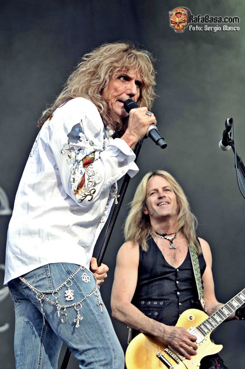 En este año 2011 salió a la luz "Forevermore", un disco para mi gusto excepcional, de cuyos autores WHITESNAKE empezaban a sonar los acordes de su primer tema "Best years" , al que siguió " Give Me All Your Love". El señor Coverdale nos dejaba boquiabiertos con su excepcional momento de forma, no paraba de saltar, de bailar ni de hacer piruetas con el micrófono, no olvidemos que el 22 de septiembre próximo, cumplirá 60 años. Tal vez le noté un poco mal de voz en determinados tramos del concierto, como en " Steal Your Heart Away", pero en definitiva fue un gran show el que nos ofrecieron durante la hora y media que duró.