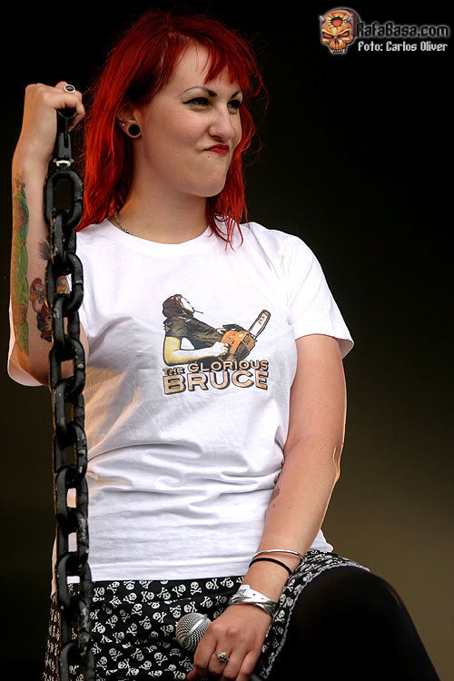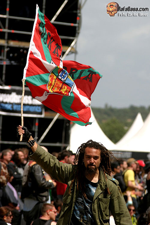 Pasadas las 6 de la tarde, y de nuevo con el sol escondido tras las nubes que amenazaban lluvia " para dentro de un momento", era el momento de escuchar buena cera clásica, aunque en este caso desde el prisma del punk de THE EXPLOITED. Curiosamente, en directo me siguen pareciendo más una banda de hardcore/thrash metal que de punk, porque la cera que meten es de impresión. De hecho, es reseñable las "ondonadas de hostias" que se vislumbraban en la pradera delante del escenario y la ración de moshpits que se dispararon sin parar durante el concierto. Por cierto, la alopecia no sólo afecta al rock y al metal, y es que me hizo gracia comprobar que la legendaria cresta de Wattie Buchan cada vez empieza más atrás (eso sí, se mantiene mohicana total, de punta y de un intenso rojo chillón). Casi 20 acelerados temas en el set list, con puntales como "Let´s start a war", "UK 82", "Holiday in the sun", "Fuck the USA" o "Punks not dead" para poner patas arriba el segundo escenario principal a media tarde.
