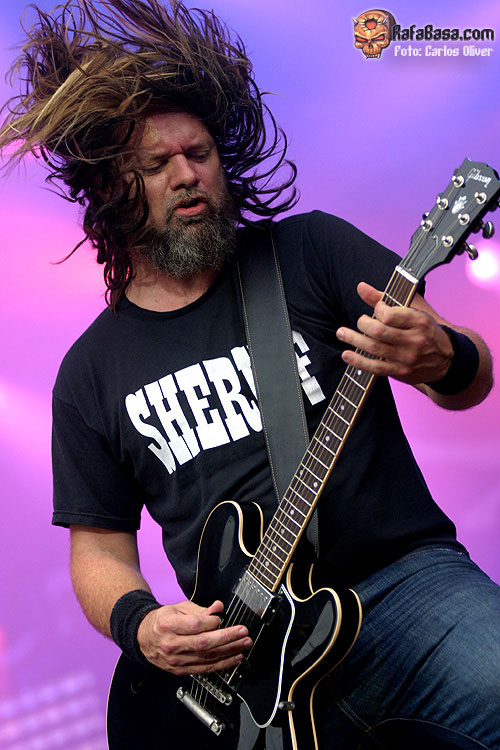 De vuelta a una reventada de gente carpa pequeña para ver a los clásicos EYEHATEGOD. Con la sonrisa puesta pensando que en las siguientes cuatro horas nos íbamos a ventilar una trilogía EYEHATEGOD-DOWN-CORROSION OF CONFORMITY, empezamos nuestro periplo stoner con uno de los grupos originarios de este crudo estilo. ¡Y cómo sonaron!… las lonas de la carpa de circo vibraron de lo lindo. De esta banda sin duda me quedo con esos riffs de guitarra de la factoría Patton-Bower que en directo suenan atroces. Todo y que el cantante iba bastante fino a esas horas de la tarde, con muestras de que el alcohol ya había hecho mella en su sangre, estuvo a la altura de las circunstancias. Con el poco tiempo de que disponían descargaron mayoritariamente temas de su último trabajo, como la inicial «Blank» o la tremenda «Sisterfucker» y presentaron un nuevo tema cuyo título no tiene desperdicio: «New Orleans Is The New Vietnam».