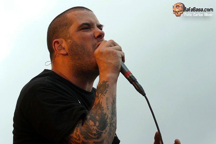 A ritmo de «Lysergik Funeral Procession», DOWN asaltan el escenario grande del festival ante una explanada que, pese a que todavía eran las 19:00 de la tarde, ya estaba hasta los topes. Con «The Path» y «Lifer» el ambiente se caldeaba, al mismo tiempo que comprobábamos que la voz de Phil Anselmo hoy fallaba bastante, costándole llegar a según que registros. Eso sí, de la actitud del cantante sobre el escenario nada que reprochar: como siempre un derroche de energía y una comunión total con la audiencia. Los puños en alto y las cabezas se movían al unísono bajo la batuta del Sr. Anselmo y sus secuaces al ritmo de temas contundentes y sucios como «New Orleans Is A Dying Whore», donde Pepper Keenan y Kirk Windstein no paraban de escupir riffs pesados como una losa de granito. La baja por larga enfermedad del bajista Rex Brown (poco después se confirmaría que no seguiría con DOWN) fue bien suplida por Pat Bruders (CROWBAR).