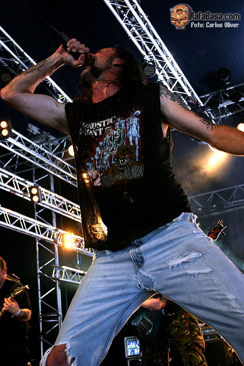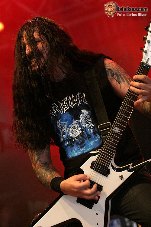 Los tres hermanos Kolesne Camargo, también conocidos como KRISIUN, se han convertido por méritos propios en una de las bandas más brutales y, al mismo tiempo, currantes de Suramérica. Su Death Metal a toda pastilla, una versión en esteroides de los MORBID ANGEL, en algunos aspectos incluso más técnicos y más veloces, con pasajes de blastbeat polirítmico que llegan a marear, son ya toda una referencia reconocida mundialmente. Los brasileños abrieron con ‘Combustion Inferno’, de su último ‘Southern Storm’, y se liaron con ‘Vengeance Revelation’, extraído de su ‘Apocalyptic Revelation’. Aprovechando un sonido decente, asaltaron su repertorio más brutal con ‘Hatred Inherit’, de su brutalísimo ‘Conquerors of the Armageddon’ y volvieron a los cortes más recientes con ‘Bloodcraft’. ‘Sentence Morning y ‘Kings of Killing’ sellaron el repertorio.