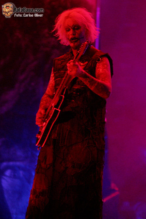 Como era de esperar, alternó temas propios y de WHITE ZOMBIE en el set, aunque lo cierto es que las mayores ovaciones vinieron de cortes como "More human than the human" o "Thunder Kiss 65" (mucho más roquera) de los segundos, aunque me gustó también el puntazo de las grandes pelotas de playa lanzadas en "Sick bubble gum" (¡Rock motherfucker!). Finalmente, y tras un set bastante corto (de hecho, tocaron 15 minutos menos de lo establecido) remataban el show con nuevas ropas y luces sangrientas con su "Dragula" para poner broche a un buen concierto pero del que sus fans esperaban más… A los que estábamos allí por curiosidad más que otra cosa, pues nos marchamos con la misma idea del principio: el rock/metal industrial no es lo nuestro.
