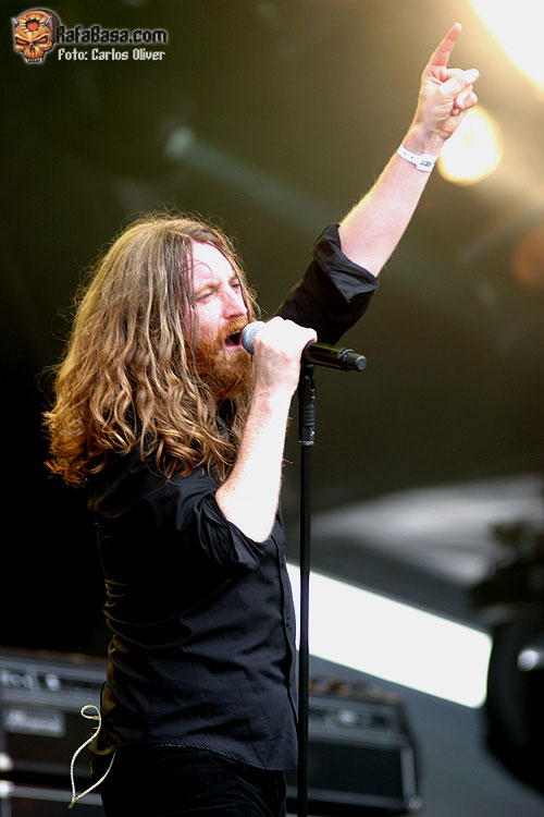 Mientras seguíamos tomando contacto con las diferentes instalaciones y servicios del festival, pudimos presenciar brevemente el concierto de THE ANSWER (a eso de las 13:45 en el escenario principal), banda que es recordada por la mayoría como los teloneros de la última gira de AC/DC en nuestro país y que posteriormente también nos visitaron el pasado año. Aunque su presencia en el festival no se debía a la presentación de un nuevo trabajo, los irlandeses nos proporcionaron una pequeña dosis de rock clásico setentero, muy apetecible para empezar a entrenar nuestros oídos ante la larga jornada de conciertos que nos venía por delante. Durante tres cuartos de hora cayeron los temas más destacados de su corta discografía («Everyday Demons» y «Rise»), con momentos álgidos con «Come Follow Me», «Two Far Hawai» y «Under The Sky» e incluso hubo tiempo para un solo de guitarra. Lo más destacable, el carisma y el bienhacer de su cantante Cormac Nelson, todo un Robert Plant en potencia, tanto en estilo como en apariencia.