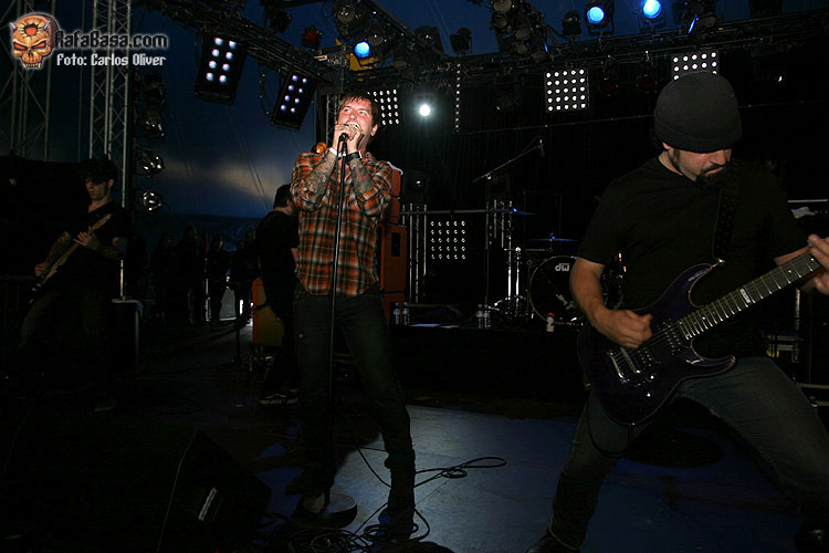 De camino a la Terrorizer Tent para ver a THE DAMNED THINGS, pude disfrutar brevemente de unos pequeños brotes de sol ante un día que fue prácticamente de lluvia intermitente, lo usual en la Bretaña francesa. Ya en la carpa, pude disfrutar de un concierto mucho mejor que el que presencié en Barcelona tres días antes (crónica publicada en Rafabasa.com). Más corto pero con un sonido infinitamente mejor. Tampoco estuvo Scott Ian (se confirmó su paternidad en el último día del festival), pero el resto de la banda dejó el listón muy alto, aunque Keith Buckley flojea bastante en directo (a nivel interpretativo), sobre todo cuando canta en tonos más agudos. Tocaron su único disco al completo (exceptuando «Bad Blood» y «The Blues Havin’Blues») ante un público muy entregado.