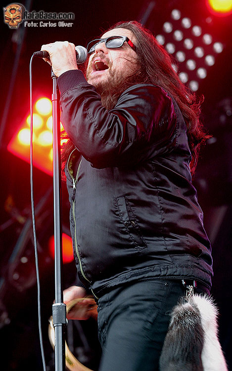 Dicho esto, vamos con THE CULT, una de las bandas que más ganas tenía de ver en el festival y que nos ofrecieron 45 excelentes minutos de intenso hard rock/rock clásico con su particular sello marca de la casa por bandera. Eso sí, en mucha mejor forma el guitarrista Billy Duffy, elegante y carismático como siempre, que el vocalista Ian Astbury (pasado de peso, con barba poblada y el pelo bastante largo de nuevo, además de una especie de cola de mapache a lo Ted Nugent que le daba un aspecto de ermitaño cuanto menos particular… y se pasó todo el concierto escondido tras las gafas de sol)… Y sin olvidarme del gran John Tempesta, un monstruo de la batería, porcierto. Comenzaron sorpresivamente con su clásico "(Here comes the) Rain"… y de repente dejó de llover y salió el sol, curioso cuanto menos. Y a partir de ahí fueron desgranando un repertorio bastante clásico y hardroquero, y es que ya lo comentó el propio Astbury al principio del show: "no somos una banda exactamente de metal pero sabemos de tocar buenas canciones de rock y hemos crecido escuchando punk rock, a LED ZEPPELIN y MOTÖRHEAD".