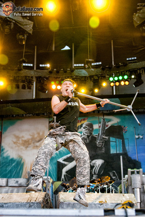 Comenzaron de día, algo que solo ellos eligieron y que prácticamente nadie entendimos, pasadas las 9 y cuarto más o menos, y lo hicieron con la intro pregrabada de "Doctor Doctor" de UFO, que fue calentando al público. Con todo el montaje a la vista, el primero en tomar posesión de su batería fue Nicko. Mientras sonaba "Satellite 15" el resto del grupo apareció, para arrancar con el primer tema como tal: "The Final Frontier", un medio tiempo que a muchos nos chocó que eligieran para apertura de una actuación a priori tan poderosa. A Dickinson parece que no le importó, porque desde el principio empezó a saltar con sus ya típicos brincos, demostrando que pasan los años, pero él sigue estando en forma y cantando bien.