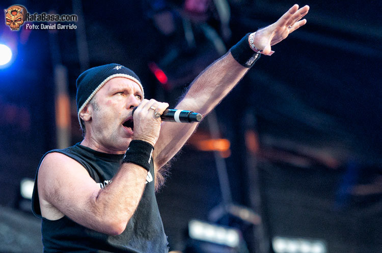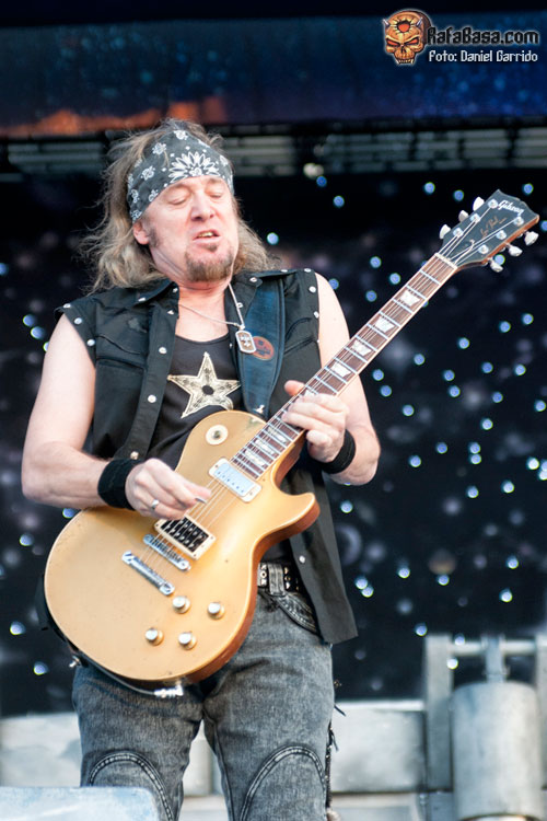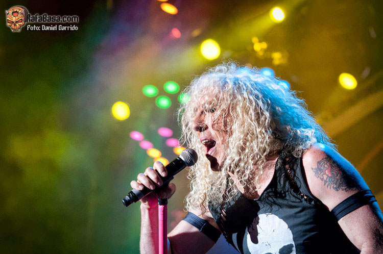 Seguíamos adelante con uno de los momentos más intensos, y es que el que no se emocione en directo con "The price" es que no tiene corazoncito metálico (yo lloré como una magdalena, lo reconozco). Por cierto, curioso el detalle de Dee de pedirnos que encendiéramos los móviles y los pusiéramos todos en alto durante el tema… y es que el efecto no es el mismo de los mecheros de antaño pero sigue impresionando. Al igual que impresiona la cara demoniaca de Dee con un sólo foco rojo intenso apuntándole mientras ataca el comienzo de "Burn in hell", ¡qué grande! Lástima que, como dijo el rubiales vocalista, era un festival y ni pueden llevar todo su montaje ni sobre todo hacer conciertos más largos, pero que íbamos a terminar a lo grande con "I wanna rock", que de nuevo debió retumbar hasta Toledo o Guadalajara. Por cierto, durante el tema tuvimos otro de los momentos del festival con Dee como niño gamberro pidiéndonos que cantáramos "I wanna fuck" si nos gustaba más retozar que roquear… y que si a ellos les preguntan, está clarísimo, aunque aquí no lo iban a hacer no porque no pudieran sino porque quedaría un poco… raro (y se vuelve a descojonar). Eso sí, el gesto gráfico fue impagable: tirar el micro al suelo y empezar a desabrocharse el cinturón de broma. En fin, grande, grande.