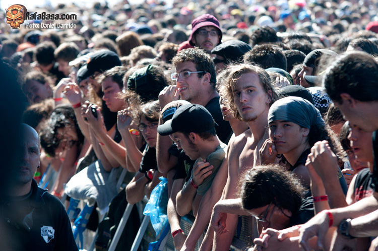 Hombre, en un festival donde toque Iron Maiden siempre habrá mucha peña, al fin y al cabo son la mejor banda de Heavy Metal de la historia junto a Judas Priest y Black Sabbath. Es que el tirón que tienen es inmenso, porque cualquier persona conoce a los Maiden, aunque no haya escuchado en su vida una canción de ellos. Si quieres escucharlos verdaderamente, te tienes que poner muy lejos del escenario, donde los gritos y los empujones no te molesten. Eso forma parte del festival, uno no puede ir a ver a la Doncella esperando encontrarse «tan agusto» como viendo a Apocalyptica, por ejemplo. La devoción que mueven estos caballeros es tanta que a veces pasan estas cosas, y uno tiene que contar con ello desde el principio.