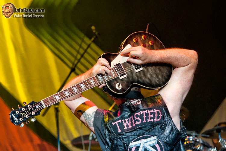 Diversión, gran sonido y encima permaneciendo en un estado increíble, por mucho que de primeras costara un poco ver a Jay Jay French con el pelo corto y con gafas, o a AJ Pero bastante regordete y pelón. Pero no, todo el concierto fue una lección continua de cómo debe de ser un concierto de rock: temazos uno tras otro, actitud y comunicación absoluta entre banda y público, sonrisas continuas, macarrería… y todo esto con la pradera ya a rebosar después del segundo o tercer tema, brazos en alto continuos y el grupo alucinando viendo la reacción de la gente con ellos en España. Es que, son una leyenda y una de las bandas más importantes de la historia, por supuesto, pero me extraña que haya países en el mundo en el que se les reciba como aquí, y claro, se crecen y lo disfrutan como niños con botas de leopardo nuevas. Y ellos en Sonisphere en este caso nos correspondieron con el mejor concierto posible, y de hecho no me corto en afirmar que posiblemente sea el mejor de los ya 5 que les he visto en nuestro país desde aquel lejano Serie Z en 2003 si no recuerdo mal (en Jerez)… y decir esto tras 4 conciertos previos sublimes es mucho.