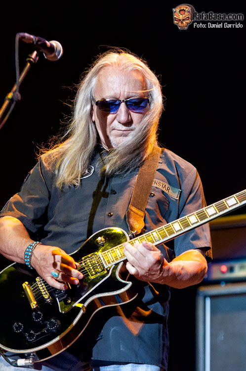 El guitarrista Mick Box y sus mayores (que decir "chicos" se me hace raro en este caso) demostrando que la veteranía es un grado y que incluso se permiten el lujo de hacer temas nuevos, como "Nailed on the head" y la propia "Into the wild" (que da nombre a su reciente nuevo discazo), que no desentonan en absoluto en un set list cargado de joyas tan sublimes como la ensoñadora "Return to fantasy", "Look at yourself" (¡qué maestría en la interpretación y qué gusto y elegancia durante toda la duración del tema!), la conocida y movida "Easy living" o ese "July morning" único que me sigue pareciendo una de las canciones claves de la historia a la altura de cualquier superhit de los 70 de cualquier banda inmortal que podáis nombrar.