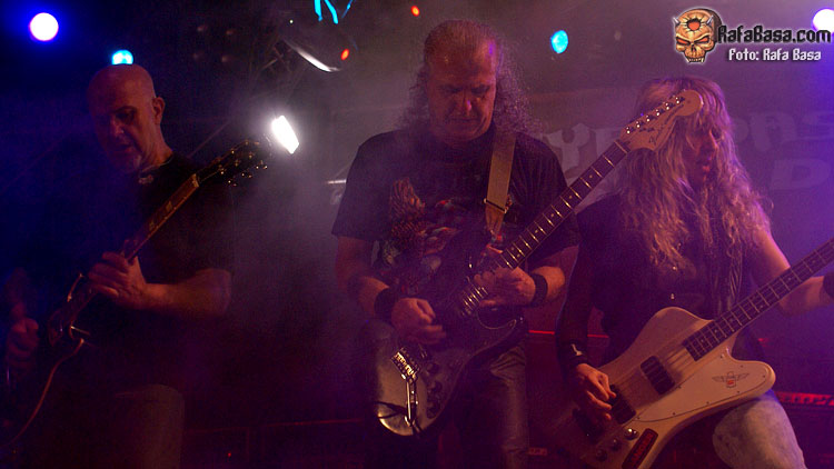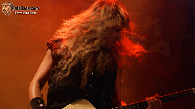 En este caso se decantaron por un concierto de clásicos, mezclada con algunas muescas de su reciente "Caminos de fuego" (de hecho, creo que fueron el tema homónimo y luego la genial "Reina de Egipto", en su versión larga que personalmente me encanta, además de "La leyenda del holandés errante", mucho más melódica y pegadiza). Comenzaron con ganas de no hacer prisioneros, poniendo toda la carne en el asador desde el principio con "Corazón indomable", "Sangre de reyes" y el citado single del nuevo disco, para ganarse a propios e incrédulos desde el principio. Y es que uno de los activos más importantes de TIERRA SANTA es la fidelidad de su gente, además de que tienen ese "algo" especial que, pese a que no son los más virtuosos de la escena ni sus temas los más complejos, se ganan a la gente con sus melodías y su actitud (ya no tan estática en absoluto como antaño, por cierto).