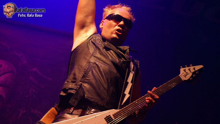 Comenzaron con la gente mostrándose un tanto fríos inicialmente, quizás por no saber algunos muy bien lo que estaban viendo, pero rápidamente se metieron al público en el bolsillo a base de calidad, temas muy conocidos y sobre todo simpatía y buen hacer sobre el escenario. Así, empezaron sorpresivamente a ritmo más lento con "Loving you sunday morning", pero los temas que realmente nos hicieron mover el culito fueron clásicos como "Coming home", "Bad boys running wild", "Make it real" o una cañerísima "Blackout" (que ya le gustaría al verdadero Meine cantarla tan bien como lo hizo el doble) que provocó una inmediata reacción de puños en alto. Por cierto, previamente el batería nos hizo un sólo muy en la línea del rollo de James Kottak (y es que ya digo que clavan conscientemente a los actuales músicos de la banda, y lo hacen realmente bien), aunque en este caso no vimos el enorme tatuaje de "Rock n´Roll" en su espalda ni se rompió la botella de cerveza en la cabeza, jeje.