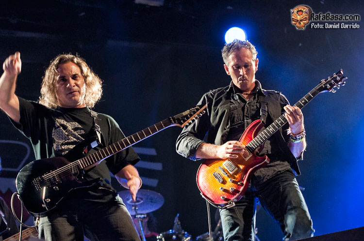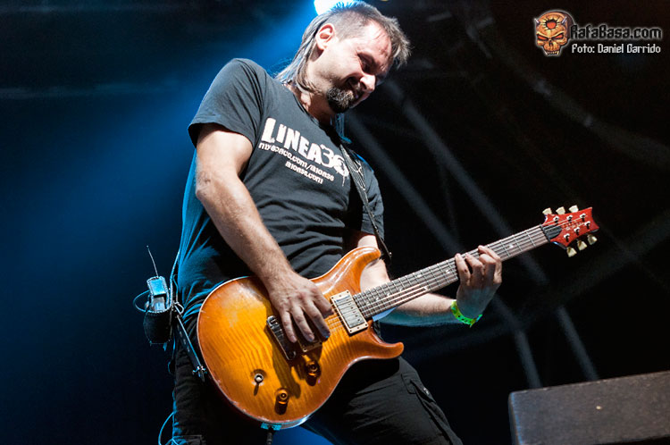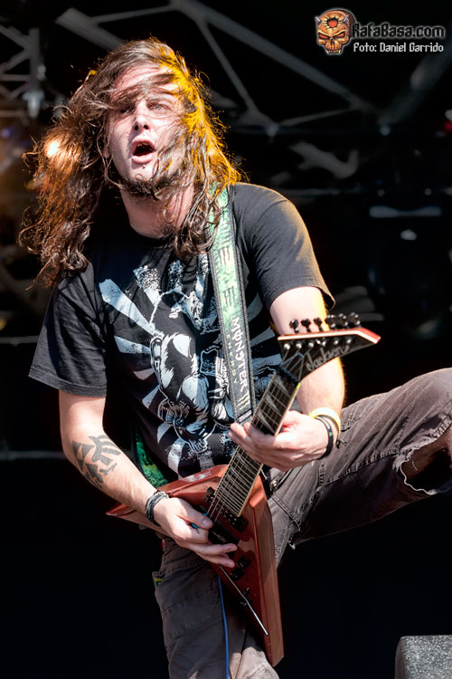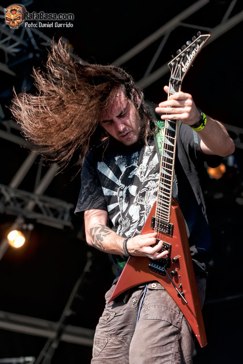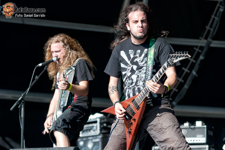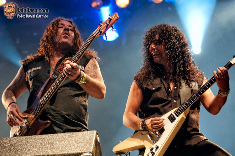 Manteniendo el set list habitual de festivales que han estado haciendo este verano, aunque algo recortado esta vez por tiempo, y con su estética habitual (y es que sigo admirando a los que tocan de negro a casi 40 grados, jeje), metieron buena cera a primera hora de la tarde repasando esos temas de sus tres discos que tan buena respuesta tienen en directo: "Blast off", "Give´em war", "Thrash attack" y demás. Por cierto, curioso el detalle de la veintena o treintena de chavales que les estuvieron esperando junto a la valla al terminar para que les firmaran, detalle que confirma que se están labrando una base de fans bastante seria (y Guillermo salió encantado con una camiseta del Barca puesta, que no se atrevió a ponérsela antes para subir al escenario en Getafe, jaja).