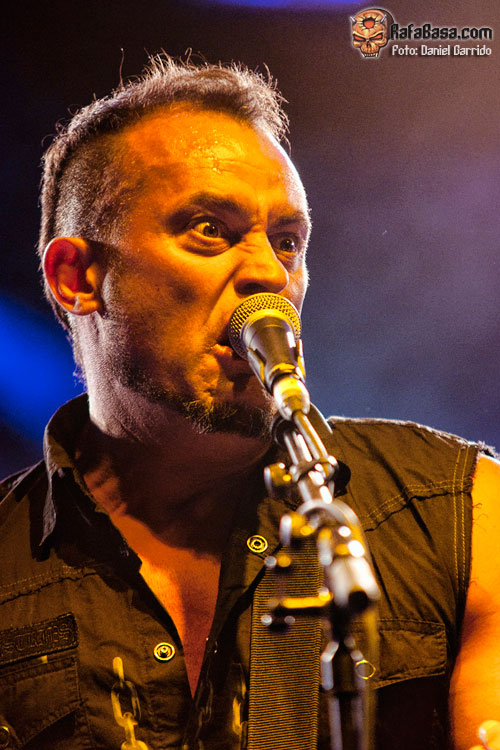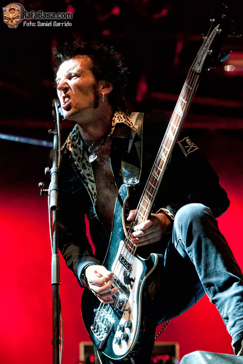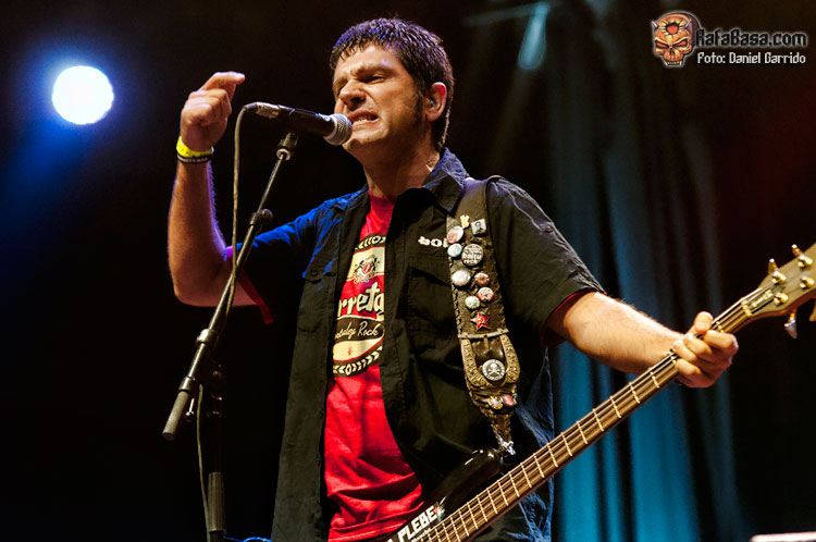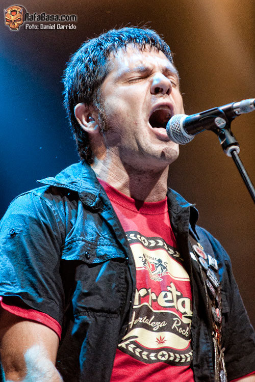 Quizás en algún momento se les puede achacar que las letras son demasiado "románticas" por momentos para lo que se le puede presuponer al cantante y bajista de BARRICADA (y que tira demasiado de tópicos de la noche, gatos y cosas así), pero a su vez es innegable reconocer que muchos de los temas tienen chispa y que el tío está encantadísimo con su proyecto paralelo en esta nueva etapa… que reitero que está siendo bastante bien recibida (de hecho, acaban de grabar DVD, "Nocturnidad y alevosía", y su álbum "Azulejo frío" está teniendo buenos resultados). Curioso verle comenzar sólo con la acústica sobre el escenario, aunque rápido se uniría la banda para atacar temas de sus dos discos, destacando ya clásicos en su repertorio como "Salvaje mirar", "Algo más que su cariño" (más gamberra que romántica), "El lobo feroz" (con ese máscara tan chula), la increíble versión que hacen del "Frío" de ALARMA o esos dos temazos para cerrar que son "Empujo p´akí" y "Azulejo frío", muy coreadas. Y que no se me pase decirlo: ¡qué buena imagen y rollo roquero tiene el bajista "Flako" en directo!