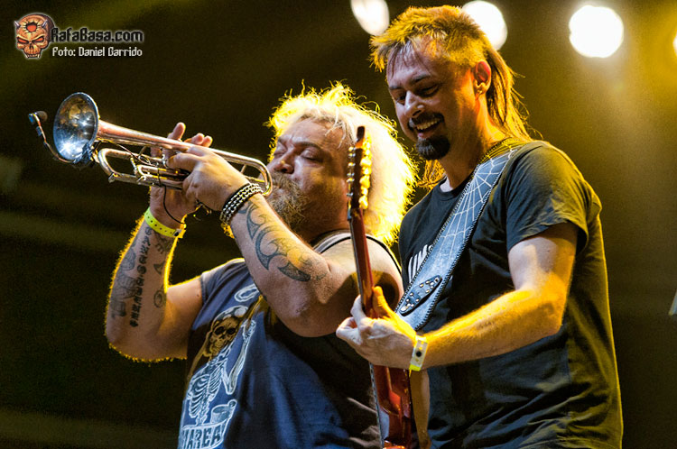 Tras ellos, y después de ver un rato la propuesta roquera de los veteranos BENITO KAMELAS, aunque demasiada melódica y "cuasiaflamencada" (al menos por parte del cantante) con respecto a las bandas que les gustan como MAREA, EXTREMODURO y demás, y el rato de mestizaje con AMPARO SÁNCHEZ (ex AMPARANOIA), que bien… para quién le guste, claro, me sorprendió el buen concierto que nos dieron MOJINOS ESCOZÍOS. Y es curioso porque hay muchos prejuicios de los heavies hacia ellos cuando son una banda realmente divertida pero que además en directo suenan muy bien, totalmente heavyroqueros (recordemos que entre sus músicos hay gente de los primeros EVO y más bandas de la escena ochentera barcelonesa) y con una imagen y rollo que ya digo que no entiendo muy bien la animadversión de cierto sector purista con ellos.