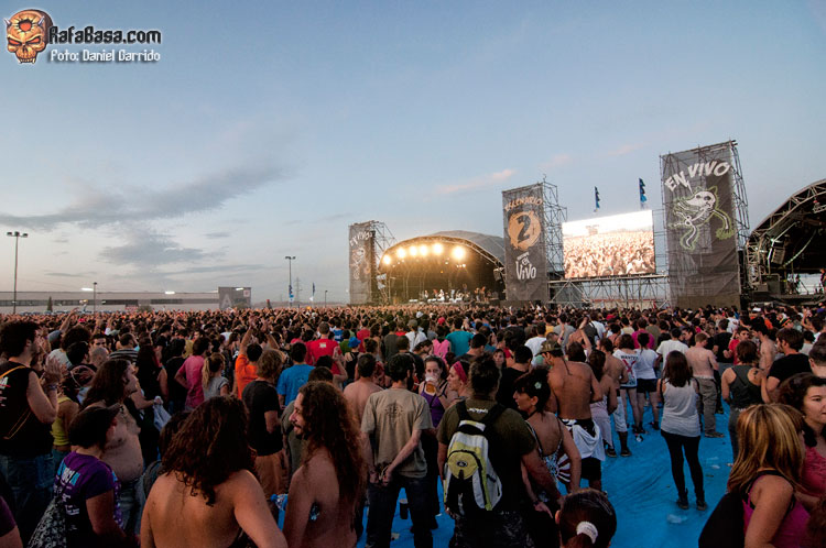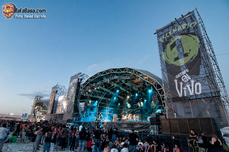 Este fin de semana se ha celebrado la segunda edición del ya popular festival… y es que, a tenor de las cifras de asistencia de ambas ediciones, es imposible afirmar lo contrario. Se mantenía el recinto Getafe Open Air del Cerro de Los Ángeles donde hemos podido ver también las últimas ediciones del Sonisphere, la última en Julio con IRON MAIDEN como gran cabeza de cartel. Así, parece que el recinto se estabiliza y las mejoras son evidentes festival tras festival, lo que se agradece. En este caso, añadir a todo lo que dijimos al respecto en nuestro comentario del Sonisphere, que han tapado con unas enormes lonas azules todo el suelo de las zonas de los escenarios principales, lo que ha minimizado muchísimo el problema básico que siempre le hemos achacado a la organización en este recinto: el polvo. Y además los precios de las bebidas en los puestos eran un tanto más asequibles (no mucho, pero bueno, algo es algo) y también había más personal, con lo que se ha solventado ligeramente otro de los problemas importantes: el de las esperas interminables para coger bebida.