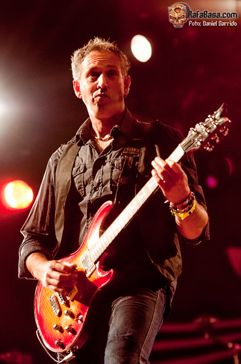 Frank y Carlitos muy solventes, ya sin Salán con ellos, un Peri totalmente afianzado en la banda al bajo, Txus cumpliendo con su papel (y sin salir de la batería ni una sóla vez, lo que me extrañó… por cierto, guapísima batería blanca, se diga lo que se diga, jeje), y un José que quizás fue el miembro que más flojeó en el concierto (la verdad es que sin Patricia Tapia, siempre genial a los coros y segundas voces, lo pasaría mal a día de hoy, las cosas como son).