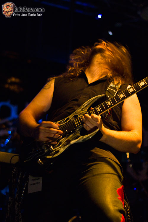 El papel más complicado lo tuvieron los locales DREAM WALKER que se enfrentaron a una sala con muy poco público y, como era de entender, algo frío al no conocer a la banda. Con un poco de retraso, la intro de su maqueta y con un sonido que inicialmente fue algo pobre, DREAM WALKER aprovecharon sus cuarenta y cinco minutos para demostrarnos muchas cosas sobre su hacer en los escenarios. Yo me quedaría con su vocalista Pablo Irujo, que supo encandilarnos con una gran voz, y con la calidad musical del resto de músicos y la complejidad de sus composiciones que consiguieron crear unos halos y atmosferas muy propios de grandes grupos del metal progresivo.