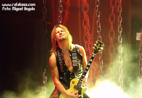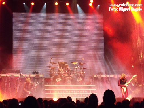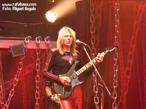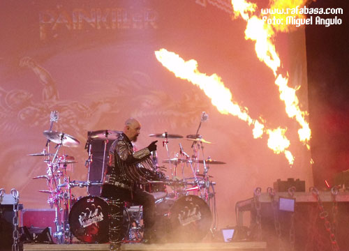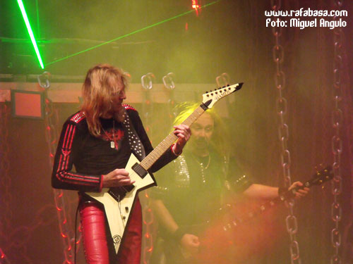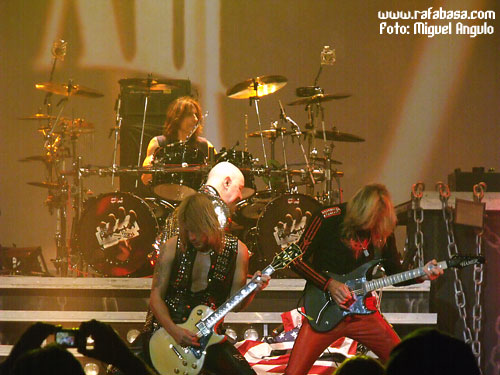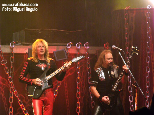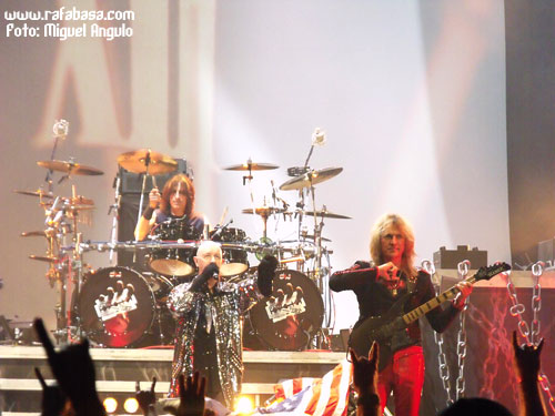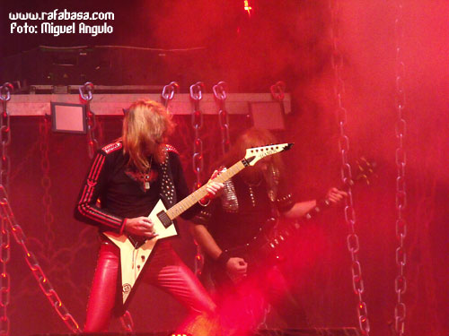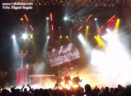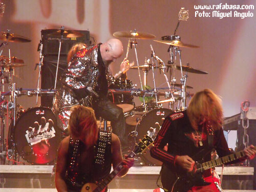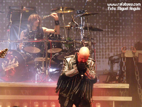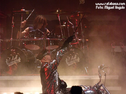 Inteligentemente, muchas bandas ofrecen diferentes cosas durante sus presentaciones según la tierra que estén pisando. Sera por los temas que hayan o no pegado en tal país, por el tiempo que duraron en volver a equis ciudad o lo que sea, las razones pueden variar. Esto hizo que me equivocara al pensar que tocarían el mismo repertorio que estaban haciendo unas semanas antes por Sudamérica. Ya les iré contando… Como saben los más acérrimos fans de esta banda, Rob Halford fue residente del valle de Phoenix por muchos años (ahora reside en San Diego, al menos hasta hace poco) y siempre que regresa hace mención del tema, saluda con cariño y agradece el recibimiento, como lo hará en cualquier otra ciudad sólo que reviviendo por esta ocasión algún recuerdo de las bien estructuradas calles y avenidas de esta área y dice "Ya era hora de volver a casa…". El Metal God en persona sobre el escenario con sus viejos compañeros, sonando excelente, su voz, que dicen algunos "ya no es tan potente", se escucha bastante saludable y aun mejor ayudado con algunos ecos y efectos disparados desde la consola de audio. Las guitarras de Tipton y Faulkner con muy buen volumen, Ian Hill con sonido claro y Scott marcando el paso perfectamente escuchable, porque hay que resaltar que estamos en un recinto construido durante los sesentas y en aquellos entonces las arenas, coliseos y demás no estaban hechos pensando tanto en las toneladas de equipo de audio que tendrían que instalarse ahí pasadas unas décadas.