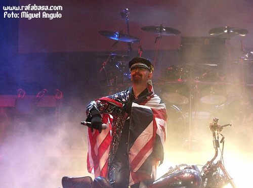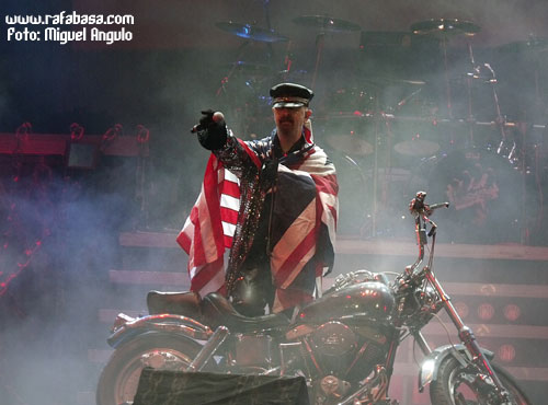 No hay cabida para dos y Halford se posiciona noche tras noche esta gira como el vocal supremo del Heavy Metal clásico como él mismo dijo; Cuando Rob aparece sobre la motocicleta, aparte de un momento clásico significa que el fin del show se acerca. Halford arropado por las banderas inglesas y americanas, haciendo gala de patriotismo y respeto el país que visita en cada momento. Después, el vocalista y frontman presenta a cada uno de sus compañeros y da tiempo para que Faulkner toque un breve solo de guitarra con el cual muestra que tiene la caña necesaria para estar ahí. Y es que las opiniones podrán diferir pero por el momento el está ahí, toca bien, toca finamente y tal vez sea para él el inicio con el pie derecho de una gran carrera. Aunque eso todavía no lo sabemos, lo que sí es que, para mi sorpresa, al momento de ser presentado ante propios y algunos extraños que estarían viendo la banda por primera vez, el nuevo de esta casi conclusa familia recibe un gran aplauso y celebración de su también preponderante y acertada presencia escénica. El publico grita ¡"Priest!, Priest! Priest! y la banda vuelve a escena un par de veces más tras la despedida antes de retirarse a prepararse para la siguiente noche.