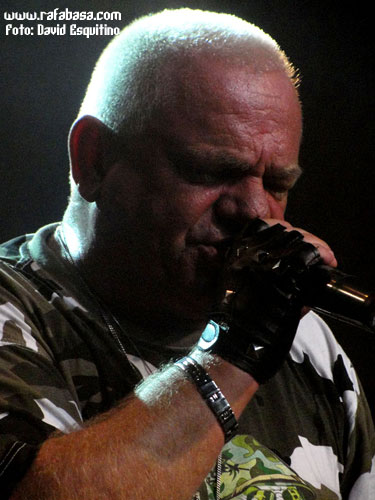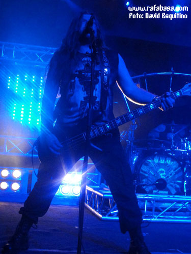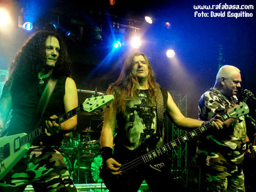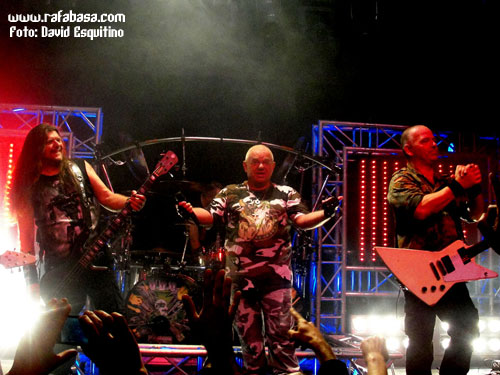 Dicho esto, decir a las 20:45 sonaba la intro "policiaca" y unas luces verdes (por cierto, excelente el juego de luces durante toda la noche, aunque a los fotógrafos nos hiciera un poco la puñeta, jeje) anunciaban que el show iba a comenzar. De hecho, empezaron como un cañón con una tripleta de temas matadores para meternos de lleno en el concierto desde el principio: "Rev-Raptor", "Dominator" y "Thunderball", que empezaban a dibujar lo que sería a la postre el show: un cañonazo continuo y un concierto de heavy metal como la copa de un pino. ¡Chapeu de nuevo a su actitud de salir a darlo todo aunque hubiera menos gente de lo esperado!