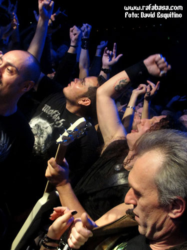 El caso es que poco a poco fue entrando gente y cuando comenzó el concierto, un cuarto de hora antes de la hora prevista, el aspecto era mucho mejor. Además, U.D.O. demostraron que son unos profesionales como la copa de un pino, saliendo a comérselo todo desde el principio, dando lo máximo como si estuvieran tocando para 3.000 personas y consiguiendo que la fría imagen inicial se convirtiera rápidamente en el hervidero que fue al final el concierto… Y es que la experiencia y profesionalidad se nota y se agradece. Además, si a esto le juntas que U.D.O. en directo es una máquina perfecta, engrasada al 100% y donde todos los músicos van a una en beneficio del show, te encuentras de manera inesperada con un concierto perfecto, en el que cada tema te va pegando cada vez más fuerte en el corazón, con toda la sala coreando cada canción, cada broma, cada riff y con ellos, que obviamente comenzaron un poco fríos por el aspecto inicial de la sala, pero que de repente estuvieron una vez más como en casa, con su gente entregada y dándolo todo.